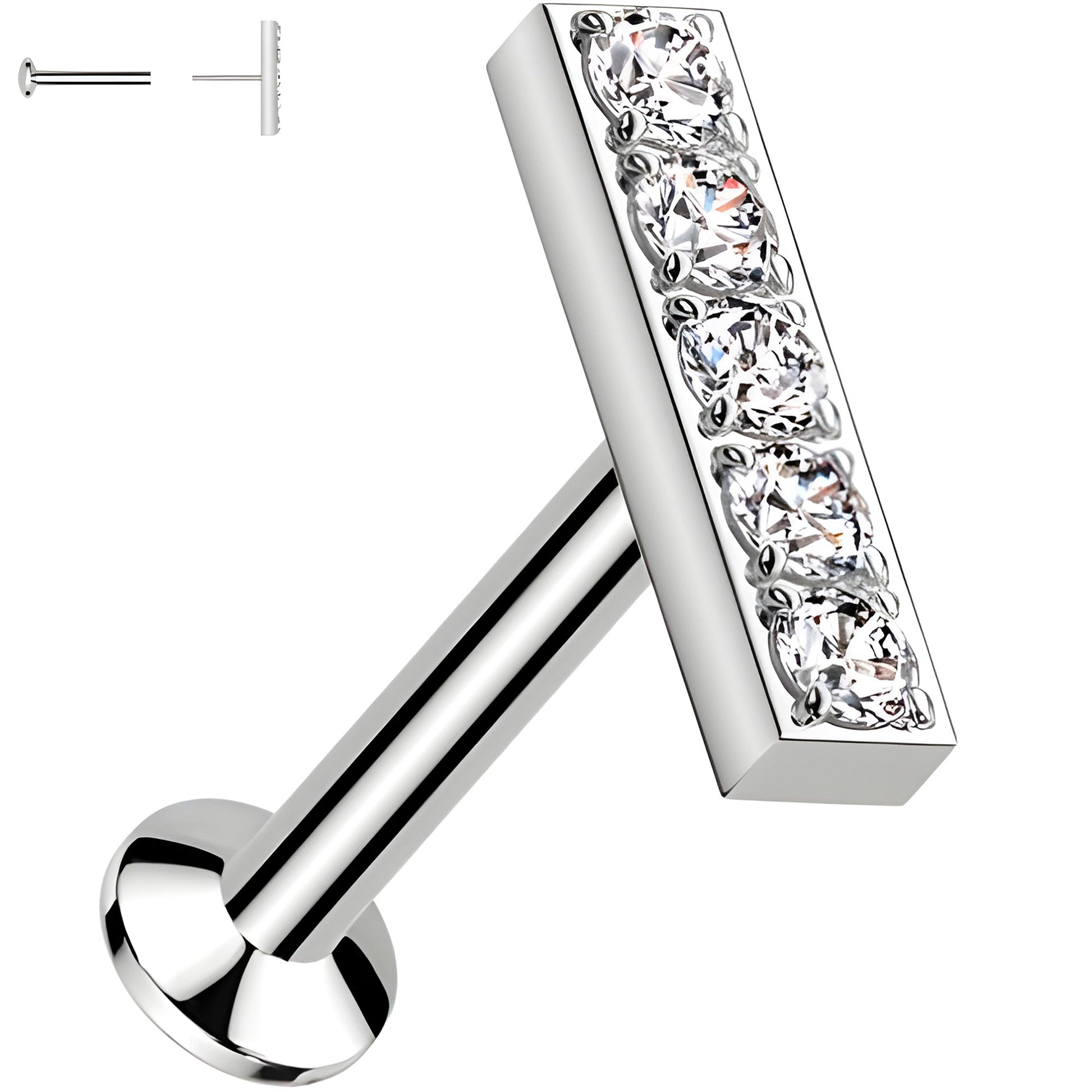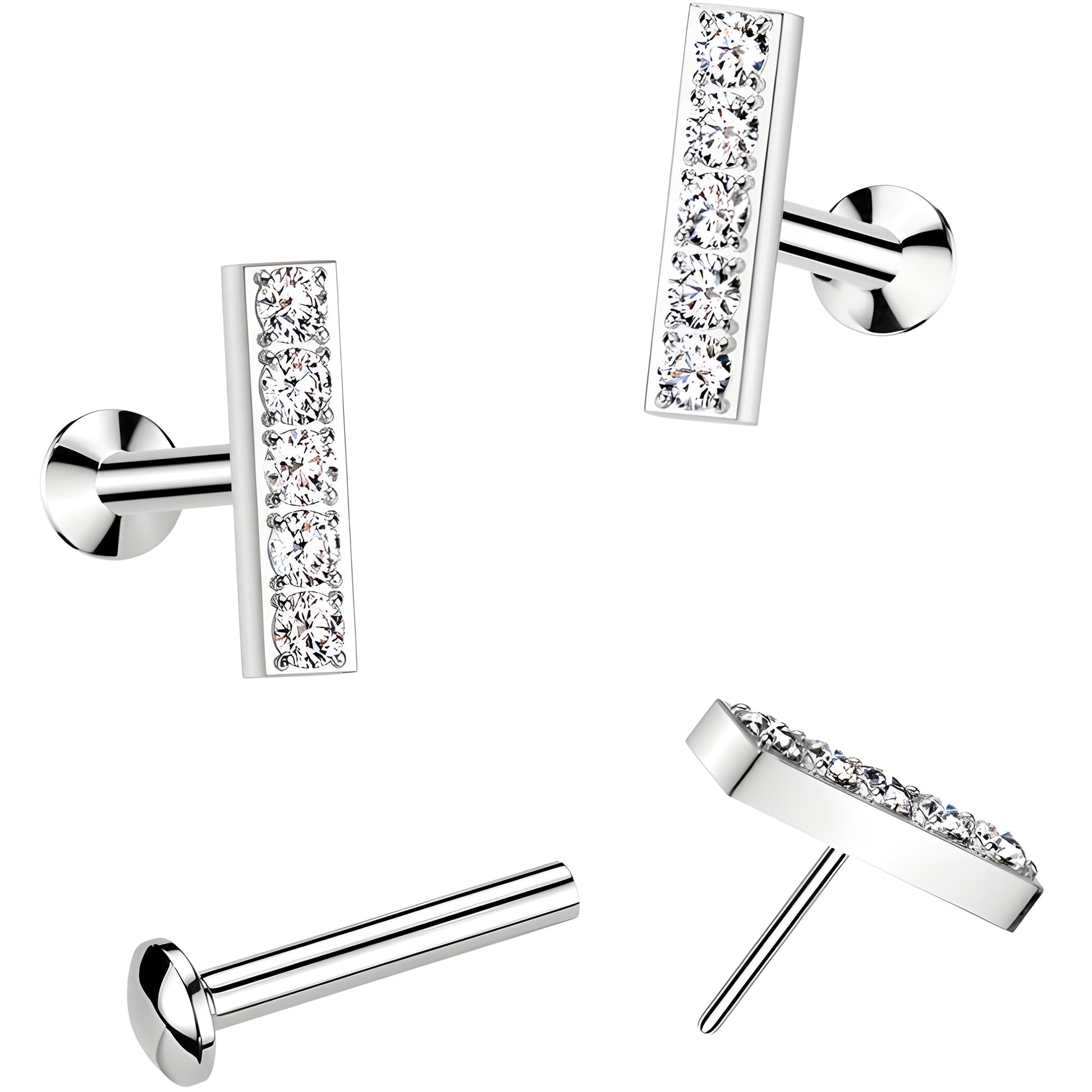 CZ Mirco Gem Bar Flat Back Earring - 18 Gauge Threadless Push In