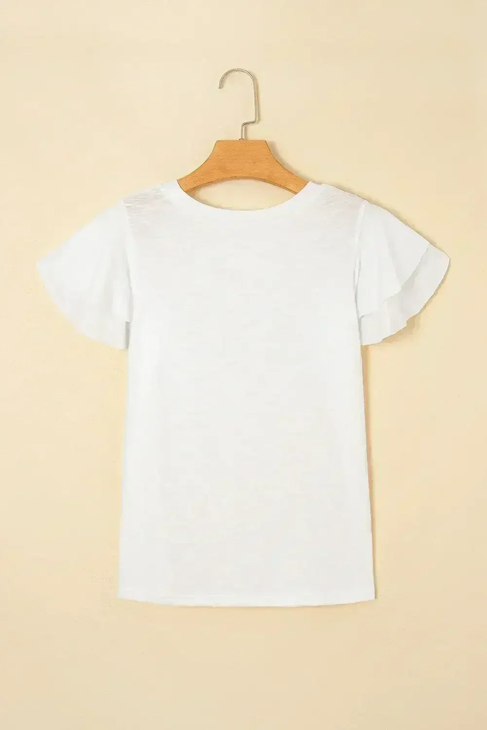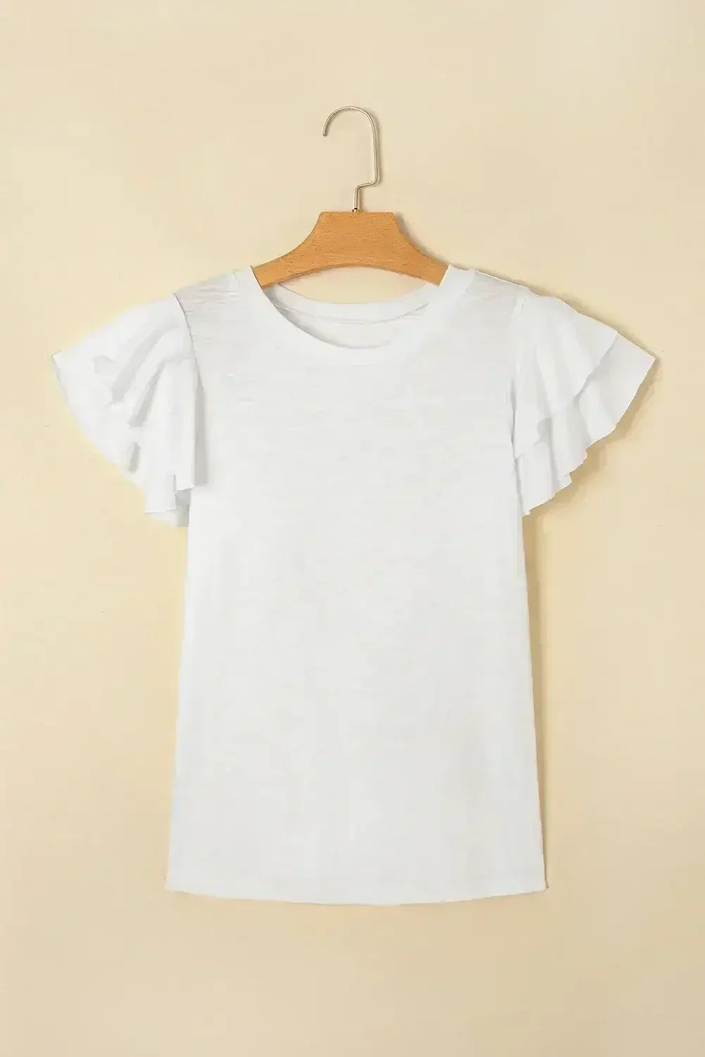 - Elevate your everyday look with this blouse, featuring intricate layered sleeves that add a touch of femininity and sophistication.