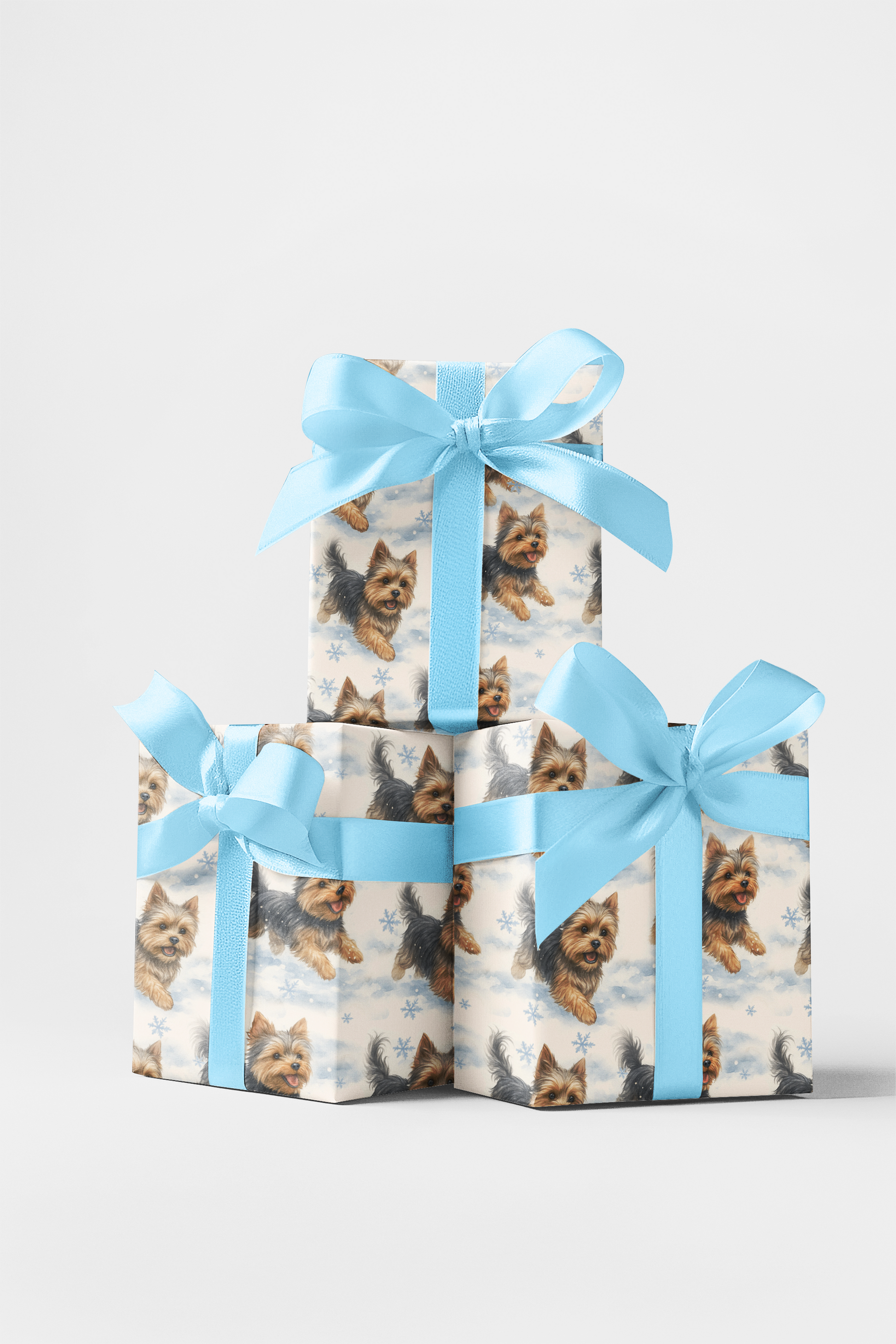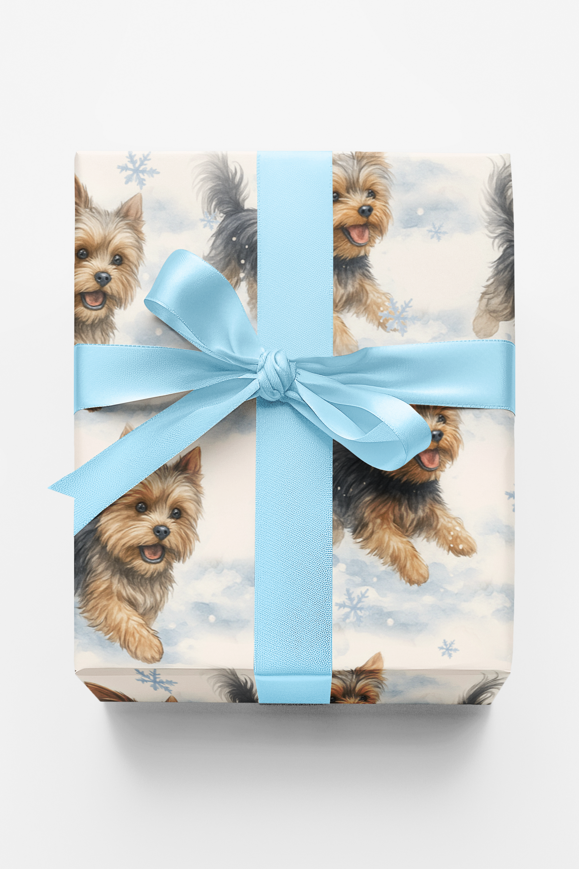 Tied with Grace & Holiday Grit (Yorkshire Terrier) Festive and full of flair, this holiday wrap captures the Yorkshire Terrier’s signature blend of elegance and bold spirit. With hints of sparkle and cozy charm, each package becomes a celebration all its own—wrapped in the style, sass, and warmth of a pup who always steals the spotlight. Perfect for gifts that deserve a little extra bark and brilliance under the tree.