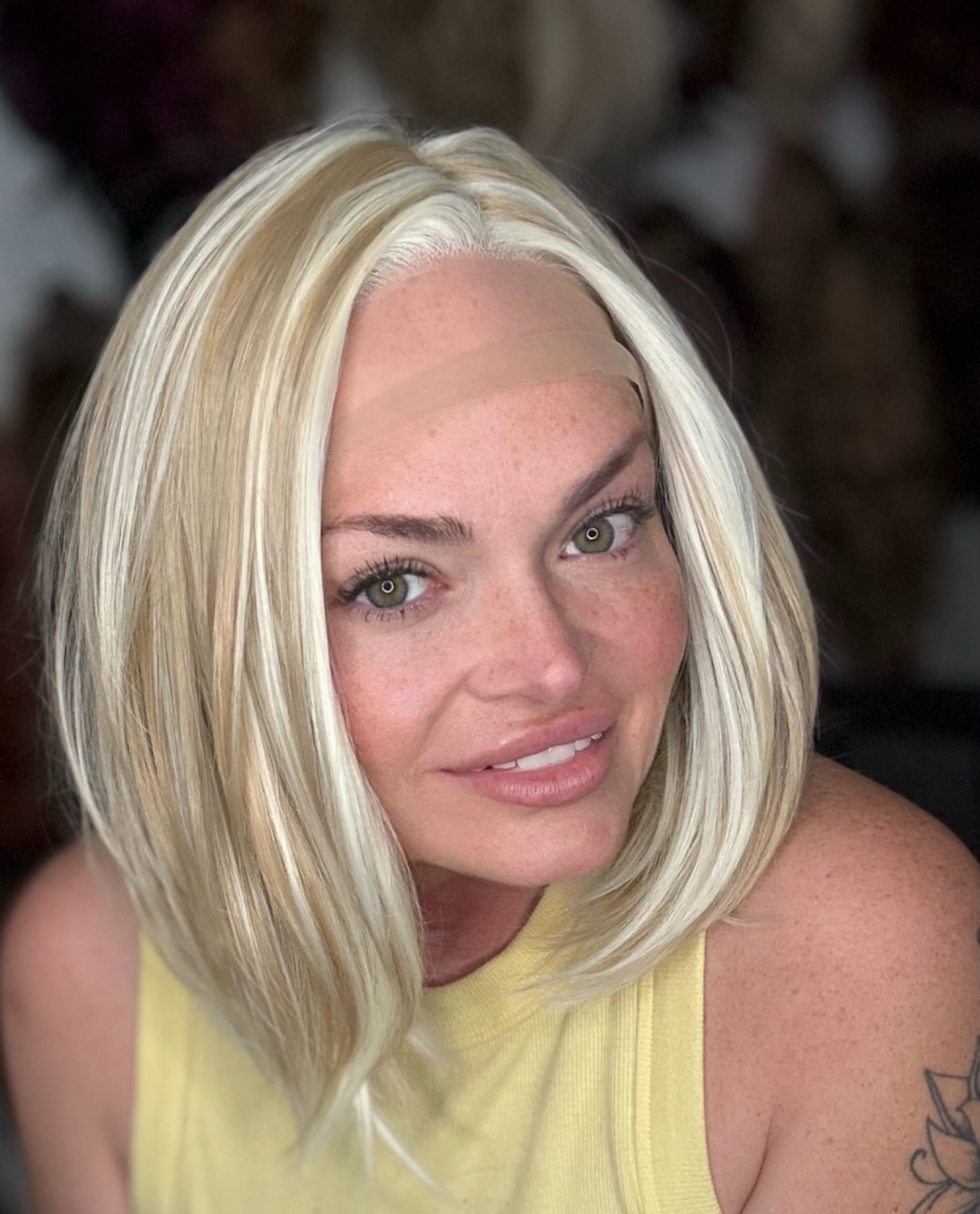 Introducing DAWN, the perfect choice for a natural and stylish look. Its lace front T part and adjustable straps provide a comfortable and secure fit. Made with premium heat resistance synthetic fiber in a 10 inch straight bob, this blonde mix adds warmth and light without any roots. Available in a standard cap size, straight from the supplier.