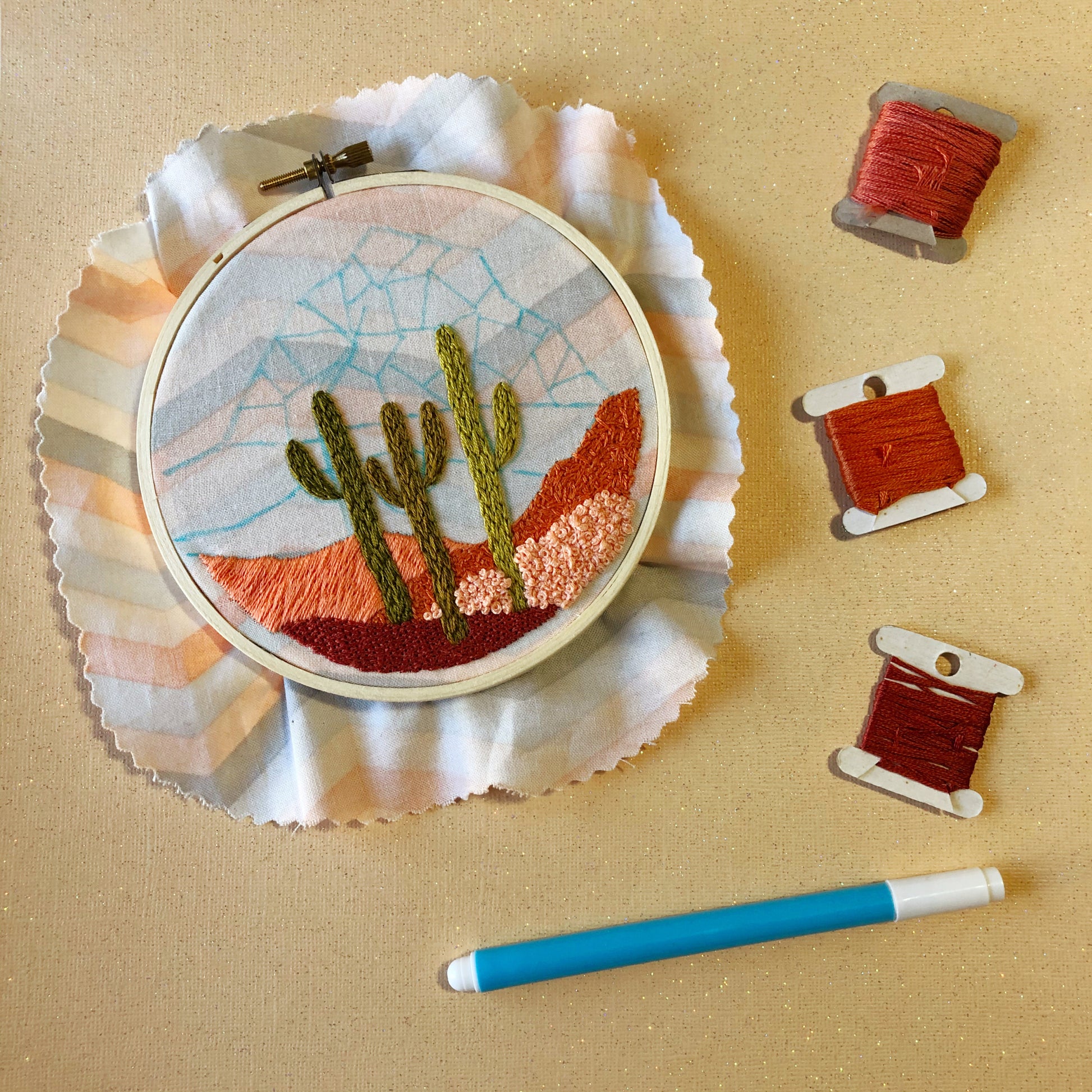 Daytime Cactus Desert Landscape DIY Beginner Embroidery Kit