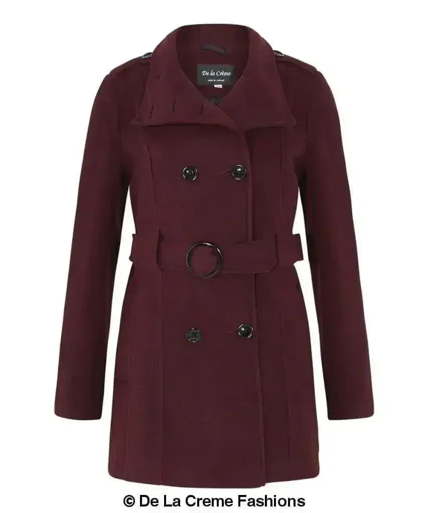 Women's Herringbone Wool Blend Military Style Belted Coat