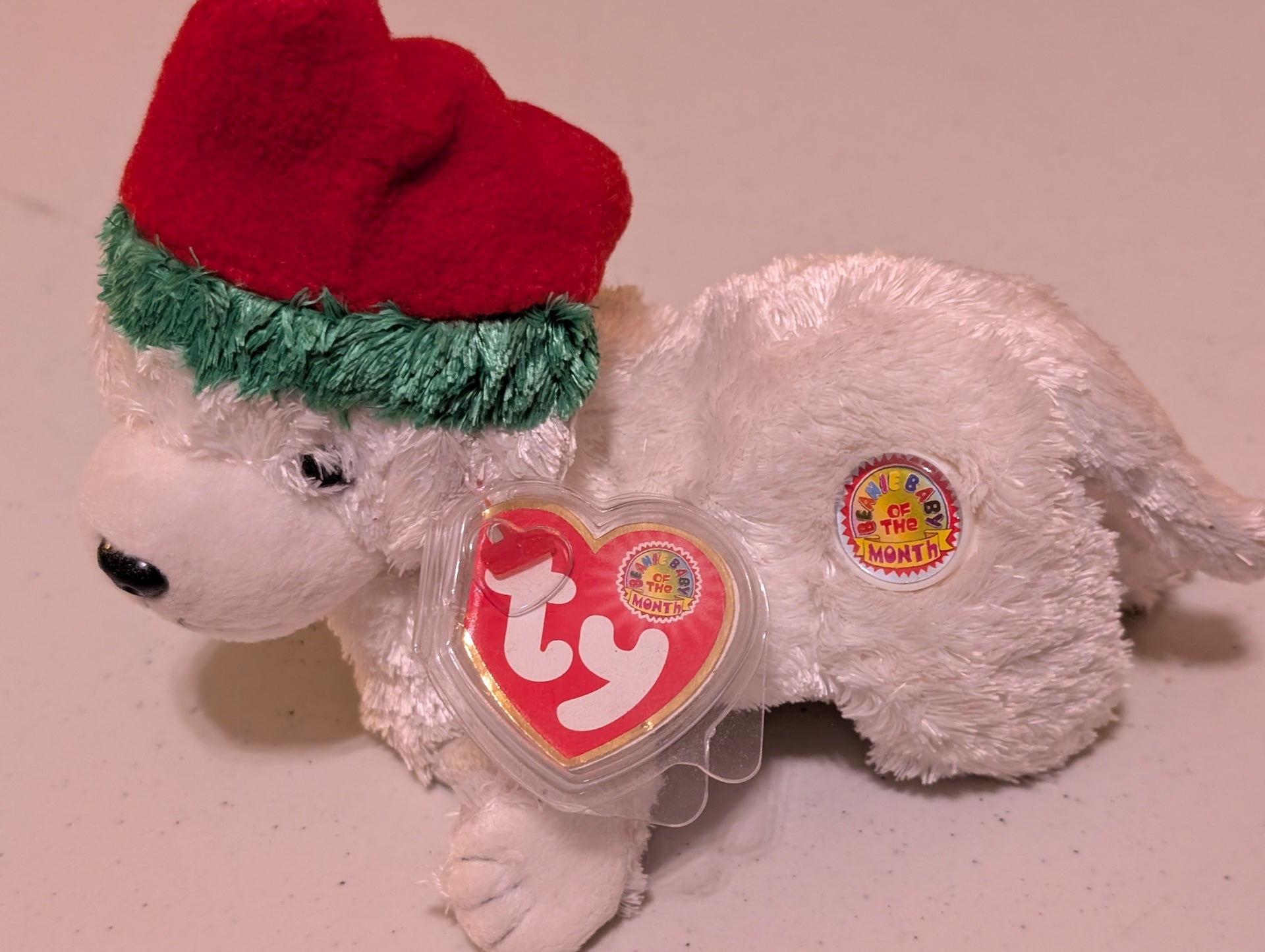 December the Dog - Ty Beanie Baby (White, 2001, Plushie, Toy, Stuffed Animal, MWMT, Vintage, Retired)