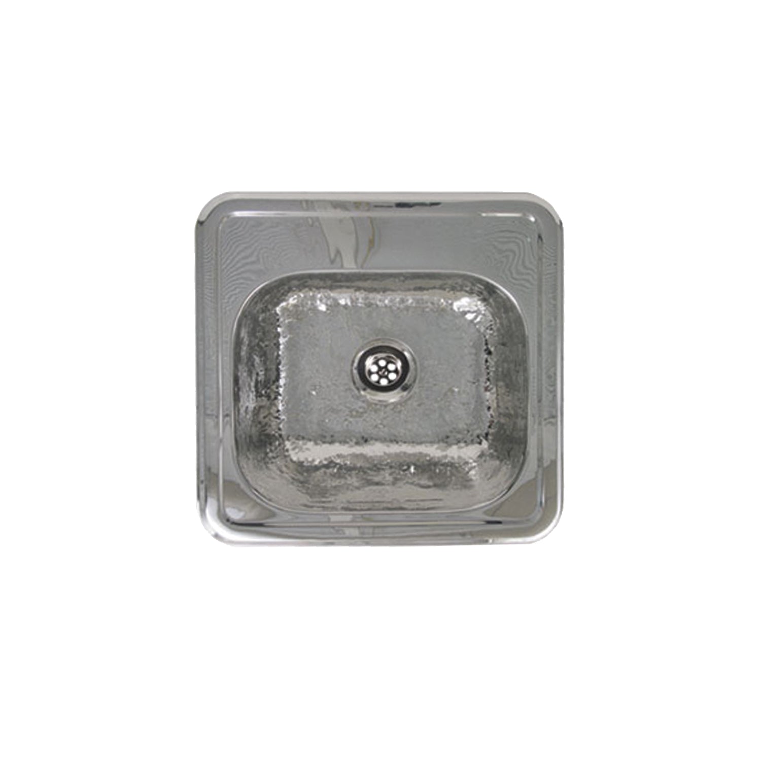 Decorative Square Drop-in Entertainment/Prep Sink with a Hammered Texture Bowl and Mirrored Finish Ledge