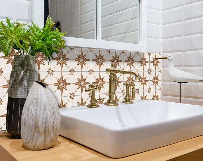 Position the tile in the place you’d like it, apply sticker onto the desired surface.