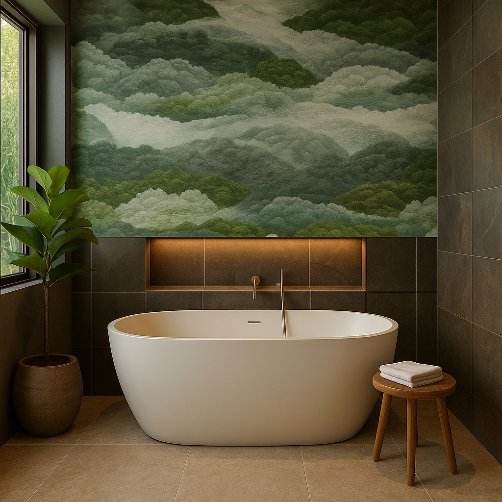 A moody aquatic abstraction, Deepwater Drift captures the ebb and flow of rolling ocean waves in desaturated tones of sage, sea glass, charcoal, and foam. The layered brushstrokes give the illusion of movement without chaos, creating a calming rhythm that suits coastal bedrooms, spa bathrooms, or organic modern spaces. It's water as meditation—deep, textural, and grounded in fluidity.