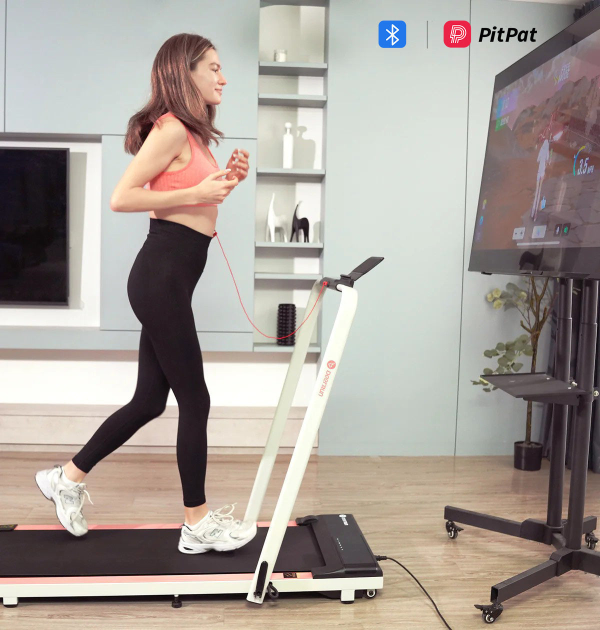 DeerRun A5 Pro Smart 2 in 1 Folding Treadmill Pink with Handrail, 300Lbs