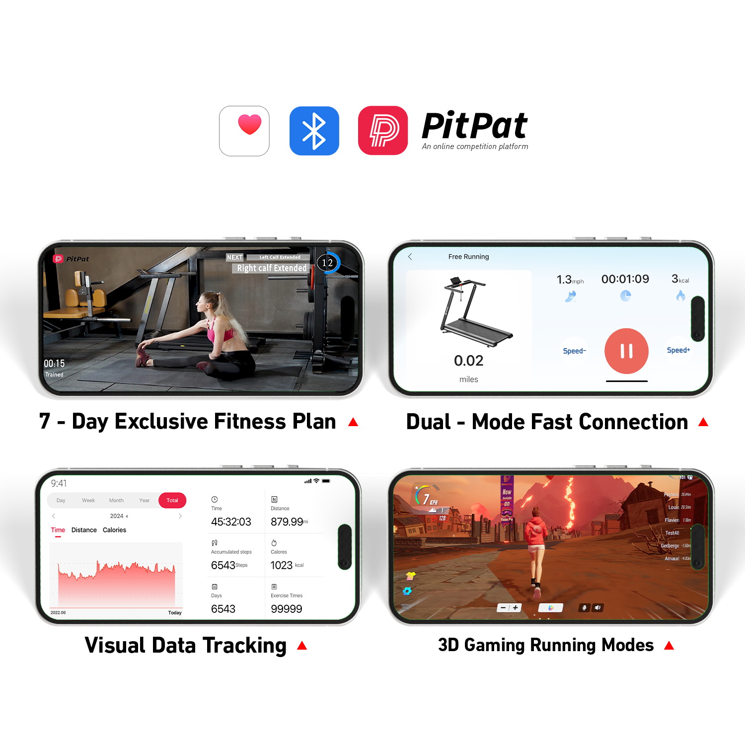 Integrated with the PitPat app, it's a fitness powerhouse. Sync real - time workout data, play 3D games, join cash contests, and access 100+ classes. Elevate your workout now!