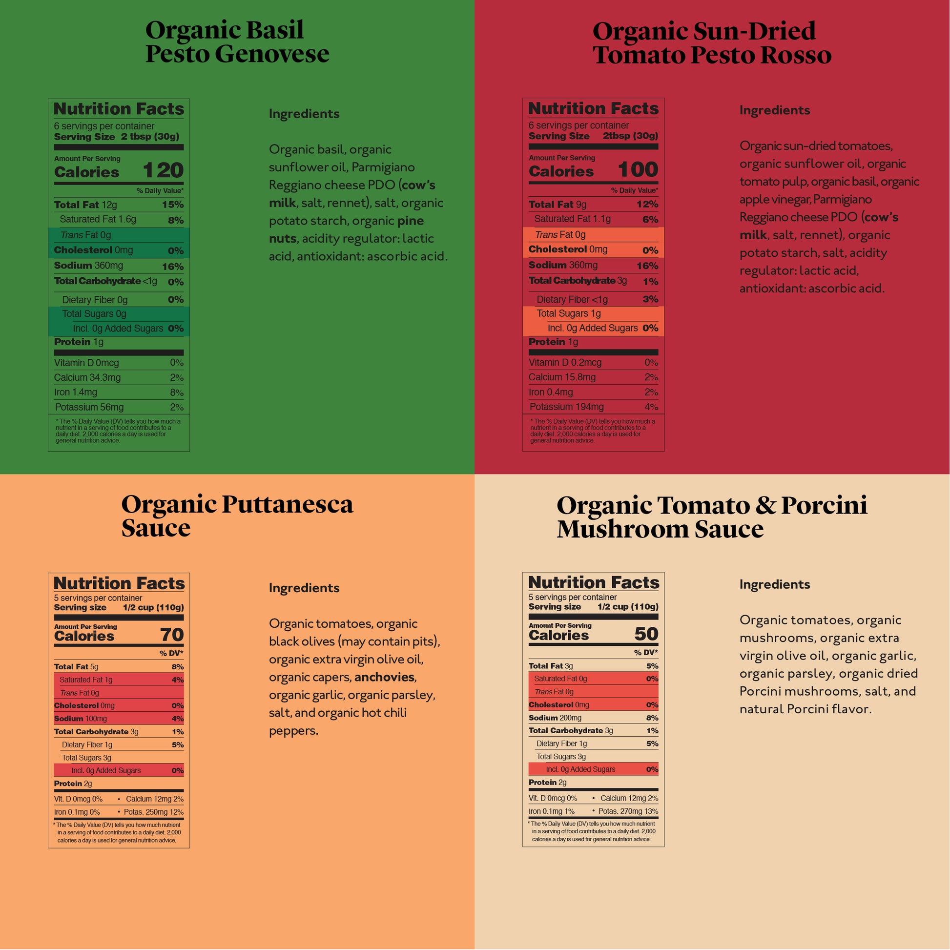Discover pasta in a whole new light with this delicious collection of organic pasta sauces. From sun-ripened tomato sauce to aromatic pesto, you will never look at store-bought Italian pasta sauce the same way. Best of all, these sauces can also be used for so much more than just pasta!