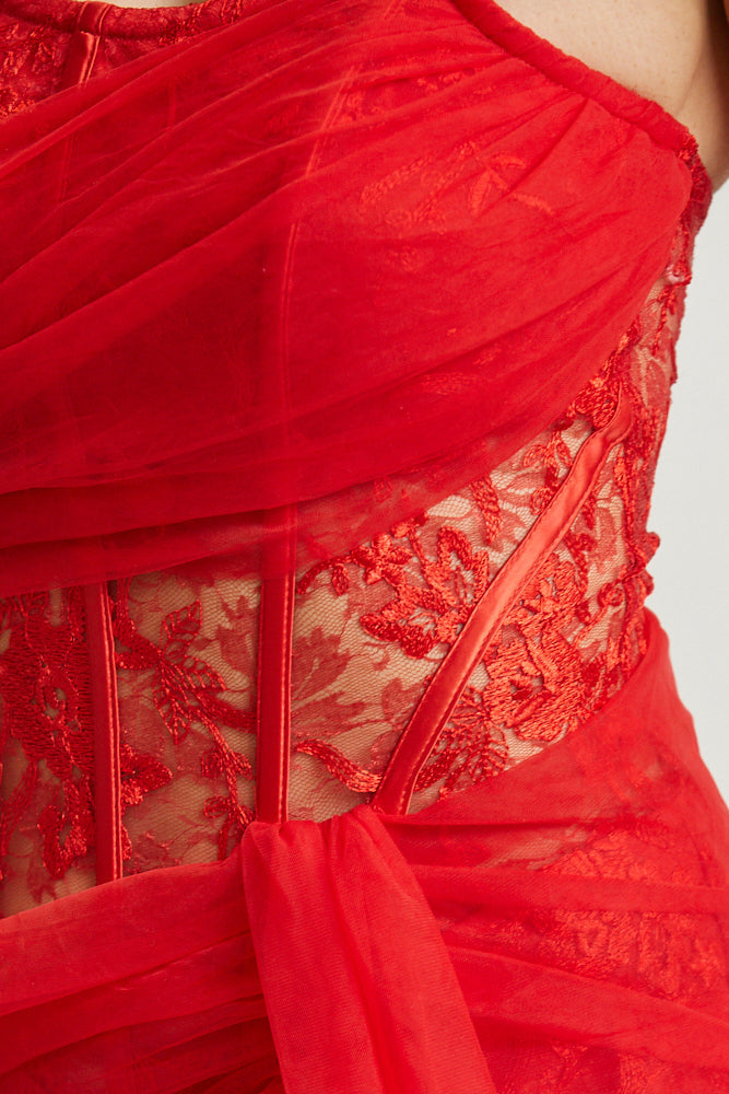 - TULLE SASH AND DRAPING LONG SKIRT OVERLAY
