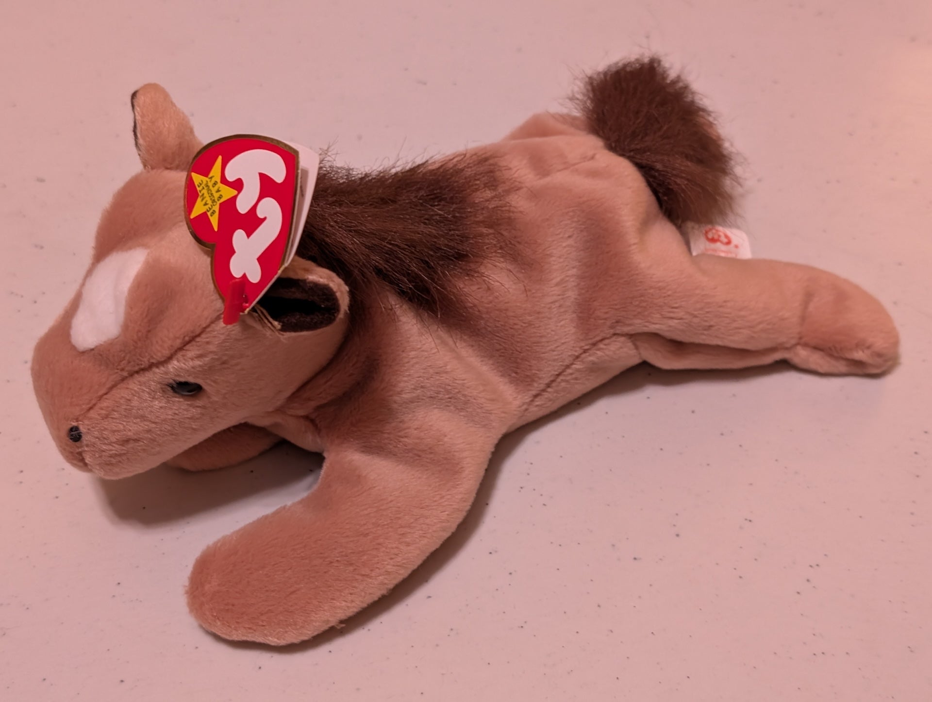 Derby the Horse - Ty Beanie Baby (Brown, 1995, Plush Toy, Stuffed, Animal, MWMT, Vintage, Retired)