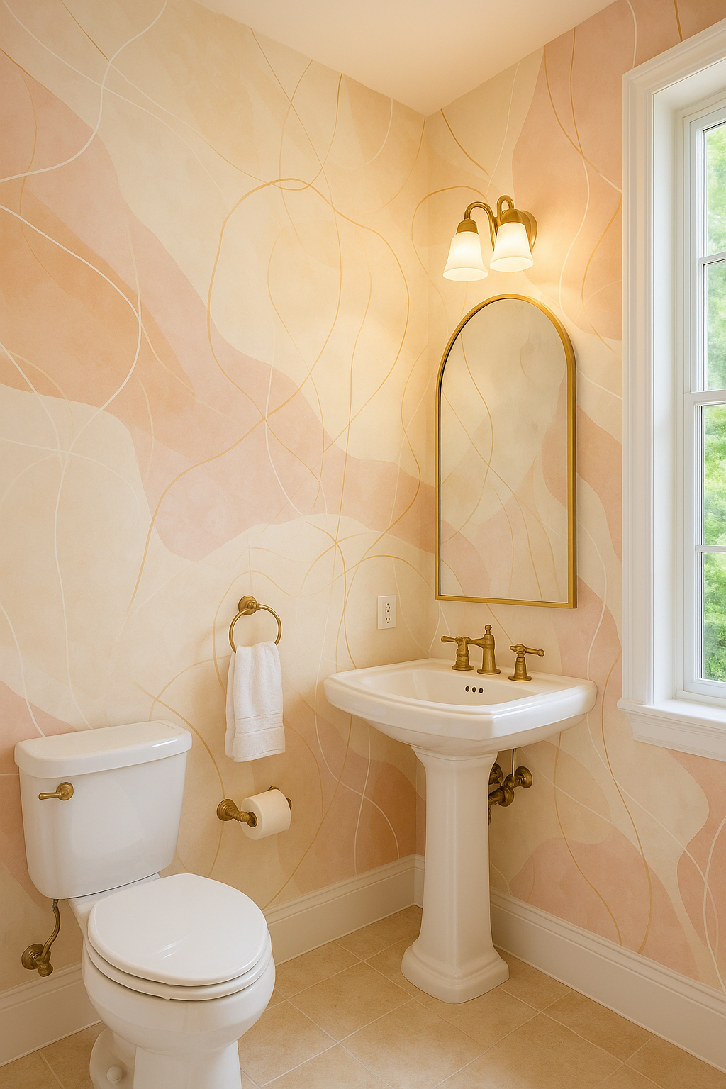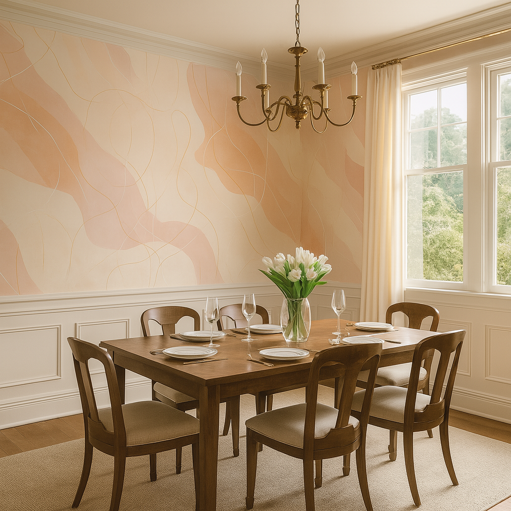 A modern abstract wallpaper that evokes the fluid movement of desert winds and canyon sands. Desert Ribbon flows with soft, wavy lines in muted peach, terracotta, sandstone, and ivory, creating an airy warmth without any sharp geometry. This minimalist wallpaper design is ideal for bohemian interiors, Southwest-style bedrooms, or organic modern living rooms. Its neutral color story and undulating pattern bring warmth and softness to any wall. Works beautifully as peel and stick wallpaper in rentals or long-term statement projects.