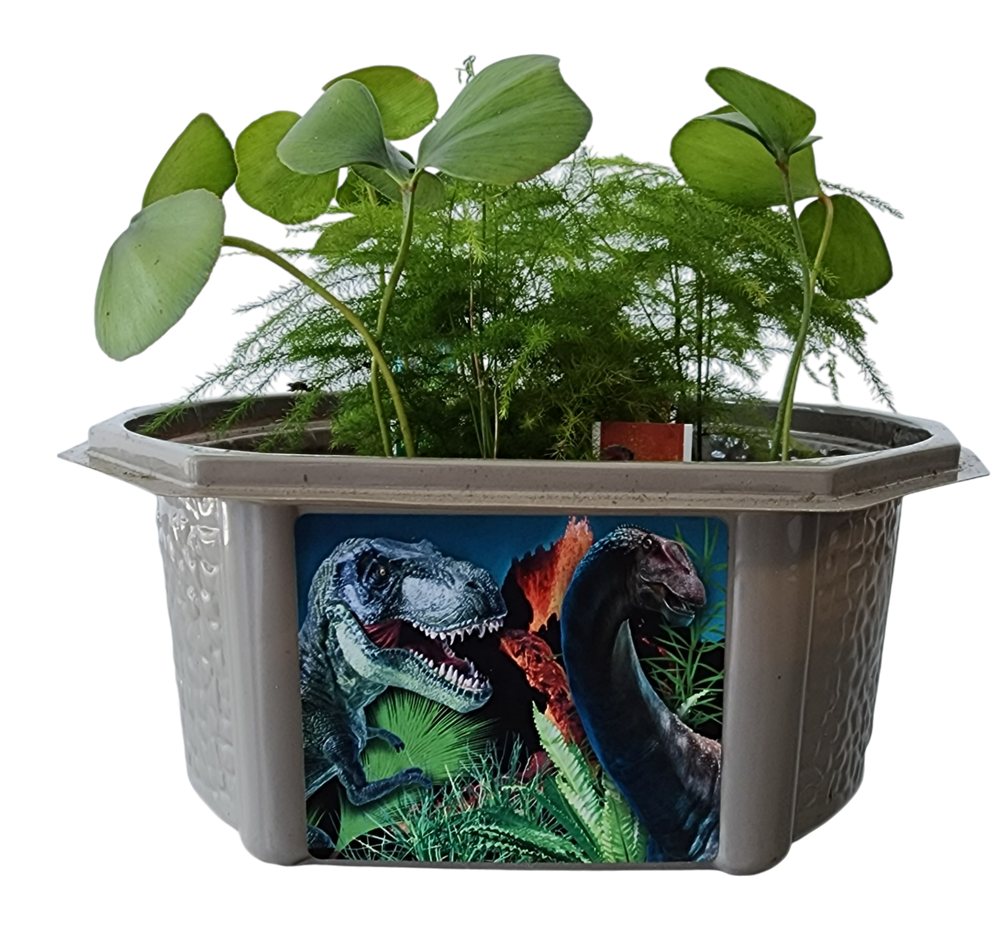 The high-quality planter has superior drainage and side ventilation help your prehistoric plants thrive. It also features a large viewing pane and a Dinosaur Decal. This collection of prehistoric plants is quick to sprout and guaranteed to grow! This fun and educational kits comes with everything you need- just add water!