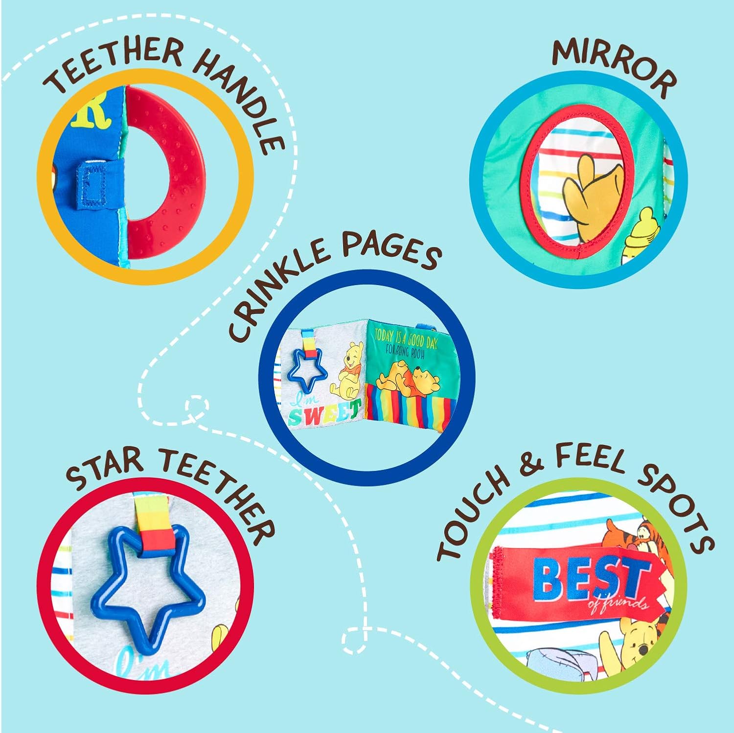 Make storytime a delightful adventure with the Disney Classic Winnie The Pooh Accordion Soft Book! This charming soft book measures 5 inches on each side and stretches out to an impressive 27.5 inches long, featuring beloved characters like Pooh, Tigger, Eeyore, and Piglet. Designed for infants and toddlers, this colorful fabric book allows your little one to explore the magical world of Winnie the Pooh while engaging their senses through interactive elements.