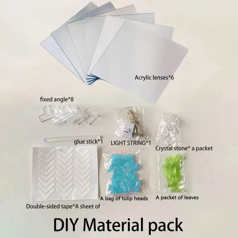Designed to evoke feelings of love and serenity, the DIY Tulip Mirror Cube Lamp features a sophisticated and minimalist cube base with an elegant, handcrafted tulip flower motif. The soft, warm light it emits is perfect for creating a cozy, intimate setting – ideal for a romantic evening at home or adding an enchanting glow to your bedroom, living room, or office.