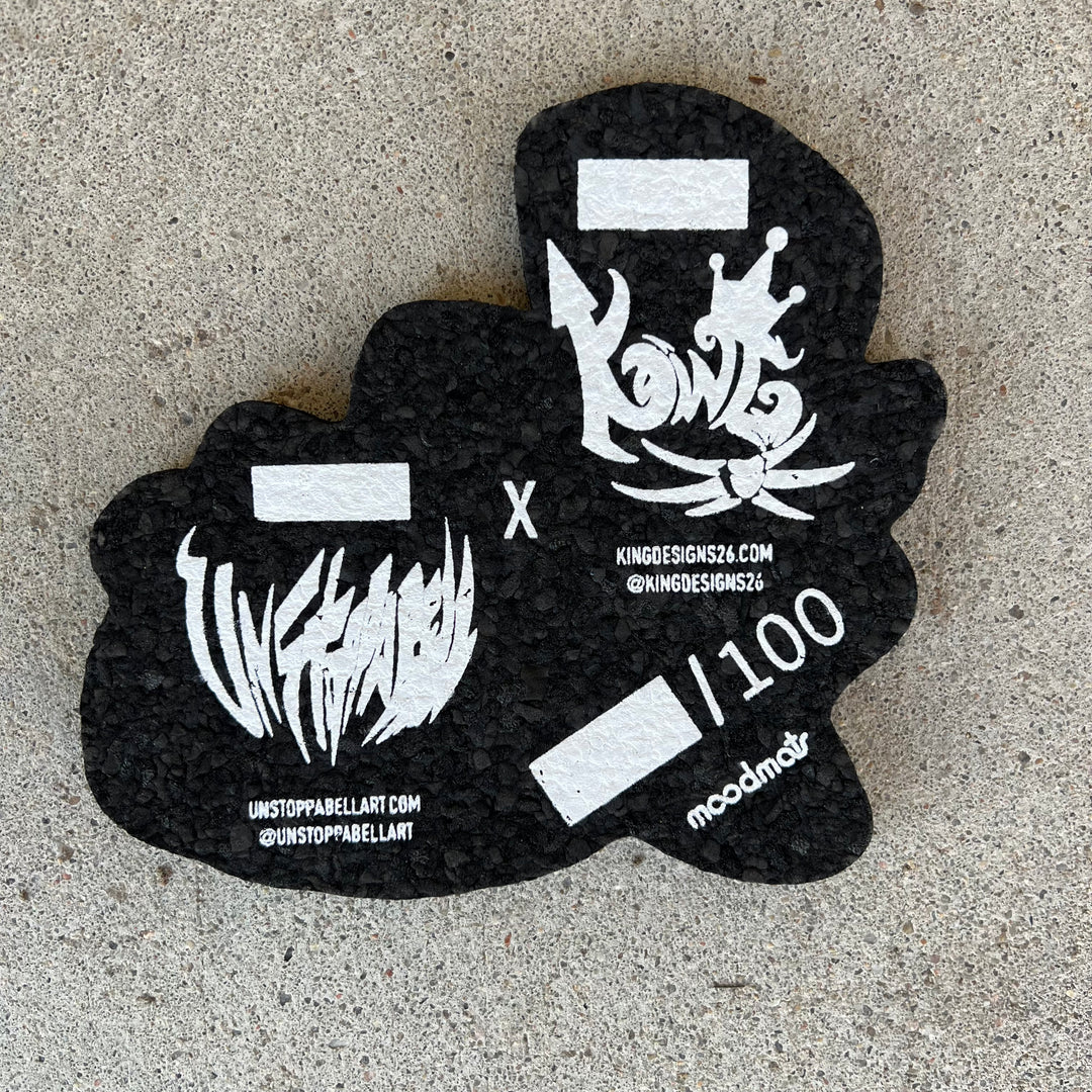 With only 100 signed pieces available, the DKSlap moodmat is a limited edition collectible that represents both scarcity and artistic quality. The artist signature authenticates each piece, making it a valuable addition to any collection. Whether you're a dedicated collector or someone who appreciates unique, functional art, this piece represents the perfect combination of utility and collectibility.