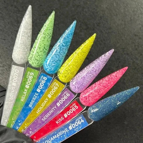 - Finish with DNKa Top No Wipe or Top Matt No Wipe, and cure again for 2 minutes (LED) or 3 minutes (UV) for a glossy or matte finish.