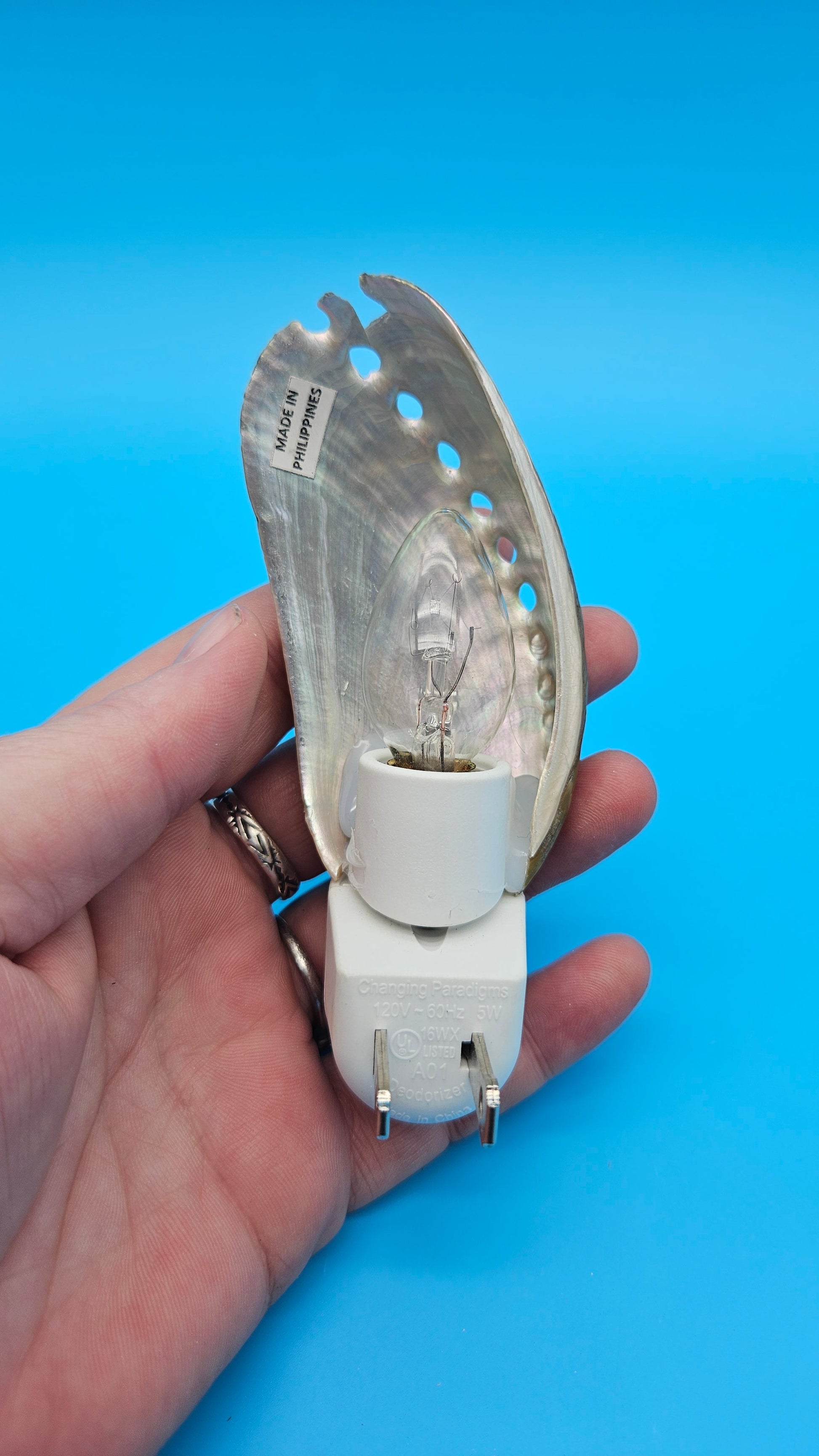 Bring the beauty of the ocean into your home with this natural Donkey Ear Shell night light. Crafted from an authentic seashell with shimmering iridescent interior, this unique piece provides a soft, calming glow that’s perfect for hallways, bathrooms, or bedrooms. A functional yet decorative accent, it adds a touch of coastal charm and nautical elegance to any space.