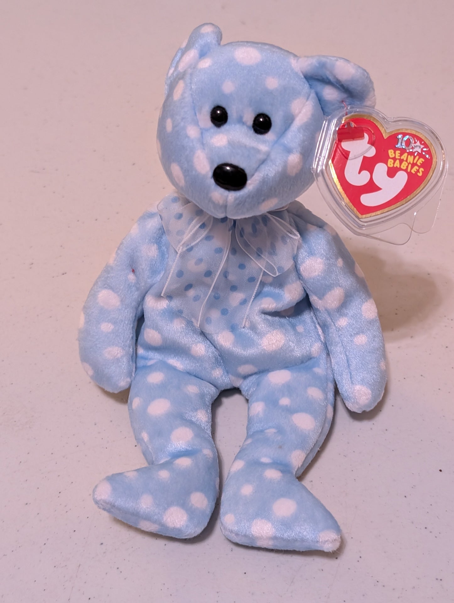 Dotty the Bear - Ty Beanie Baby (Blue, White, 1999, Plushie, Toy, Stuffed Animal, MWMT, Vintage, Retired)