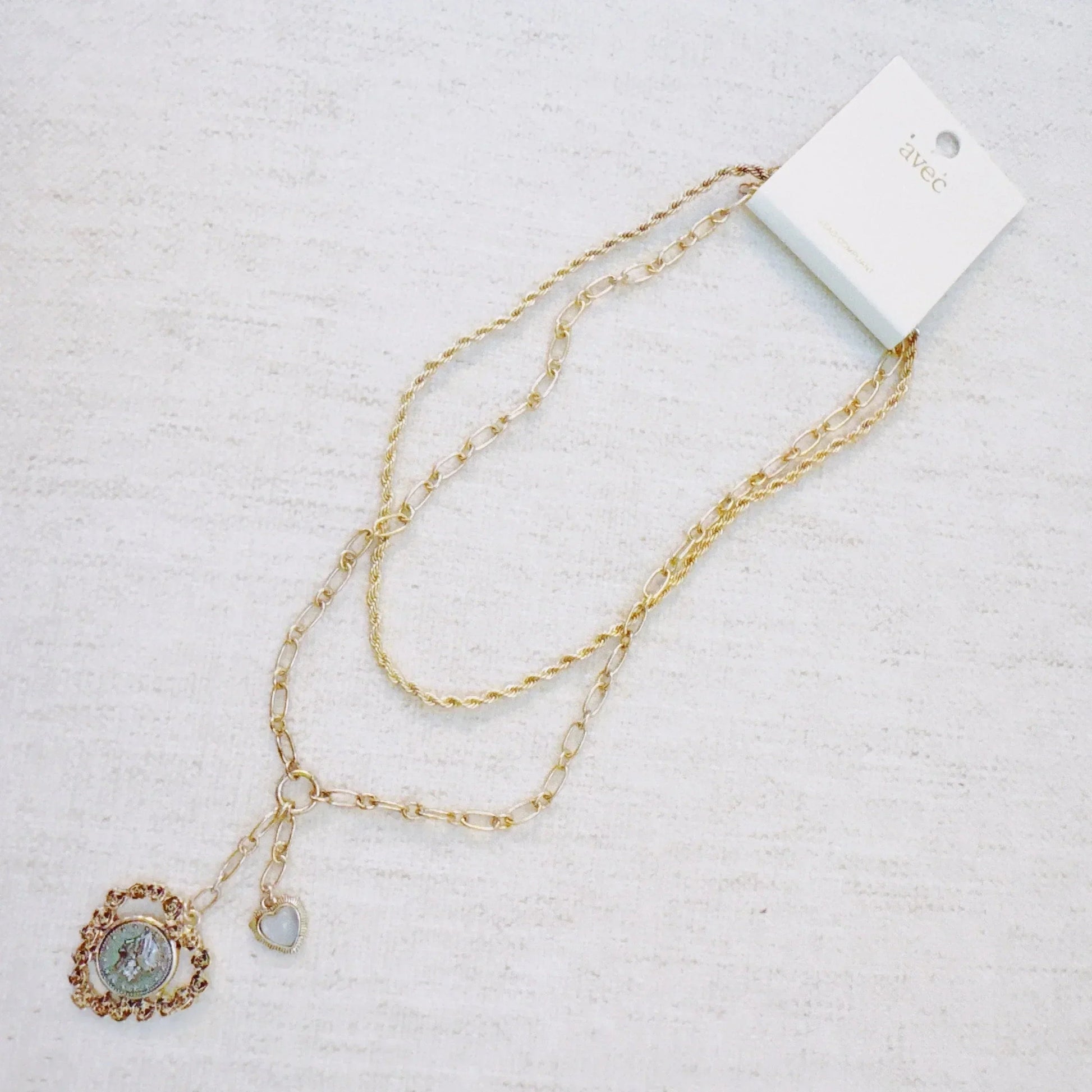 Double Chain Heart Pendant Necklace – Layered Gold Links with