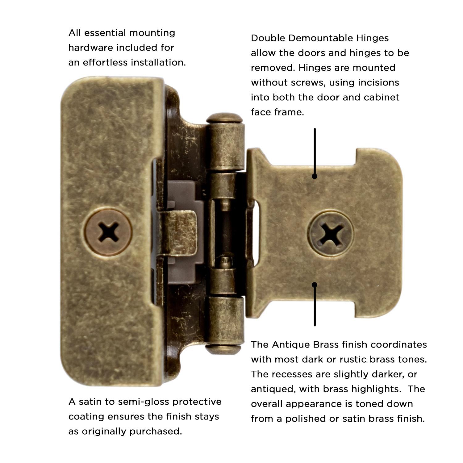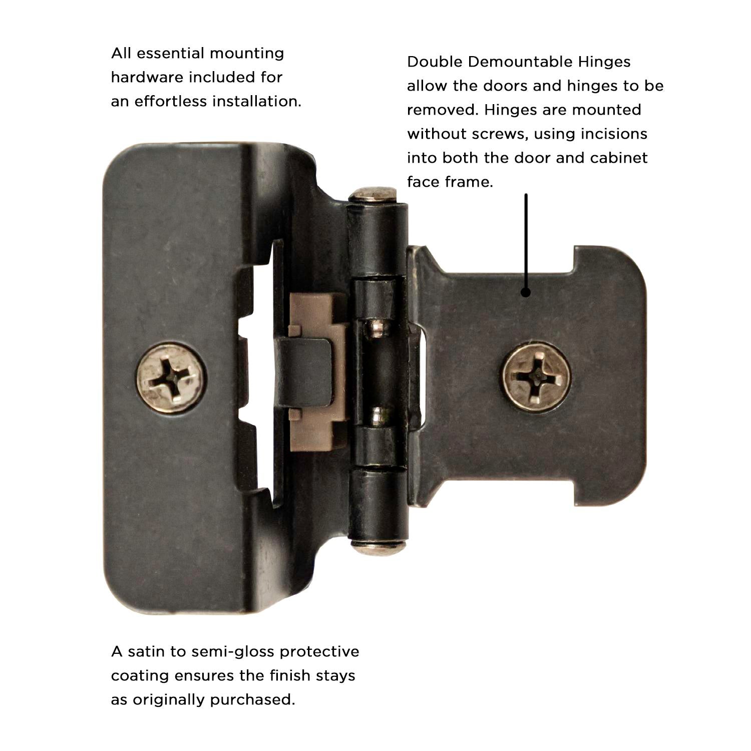 - Screwless - uses clamps to mount to mortised door and cabinet face frame