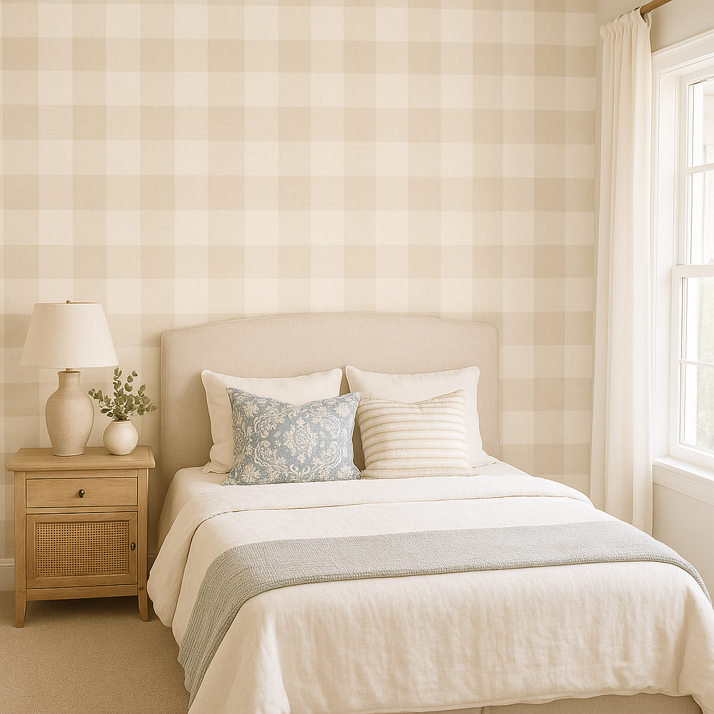 Driftwood Check reimagines the classic check pattern with a whisper-soft, coastal sensibility. Rendered in warm whites, sand tones, and sun-bleached taupes, this seamless design has the gentle irregularity of handwoven linen — subtle texture, softened edges, and an organic flow that feels effortlessly grounded. The checks are quietly structured yet imperfect, evoking driftwood grains and the rhythm of coastal living. Ideal for living rooms, entryways, or serene studio spaces, this pattern balances minimalism with warmth, offering a calm, modern backdrop that’s refined but never rigid.