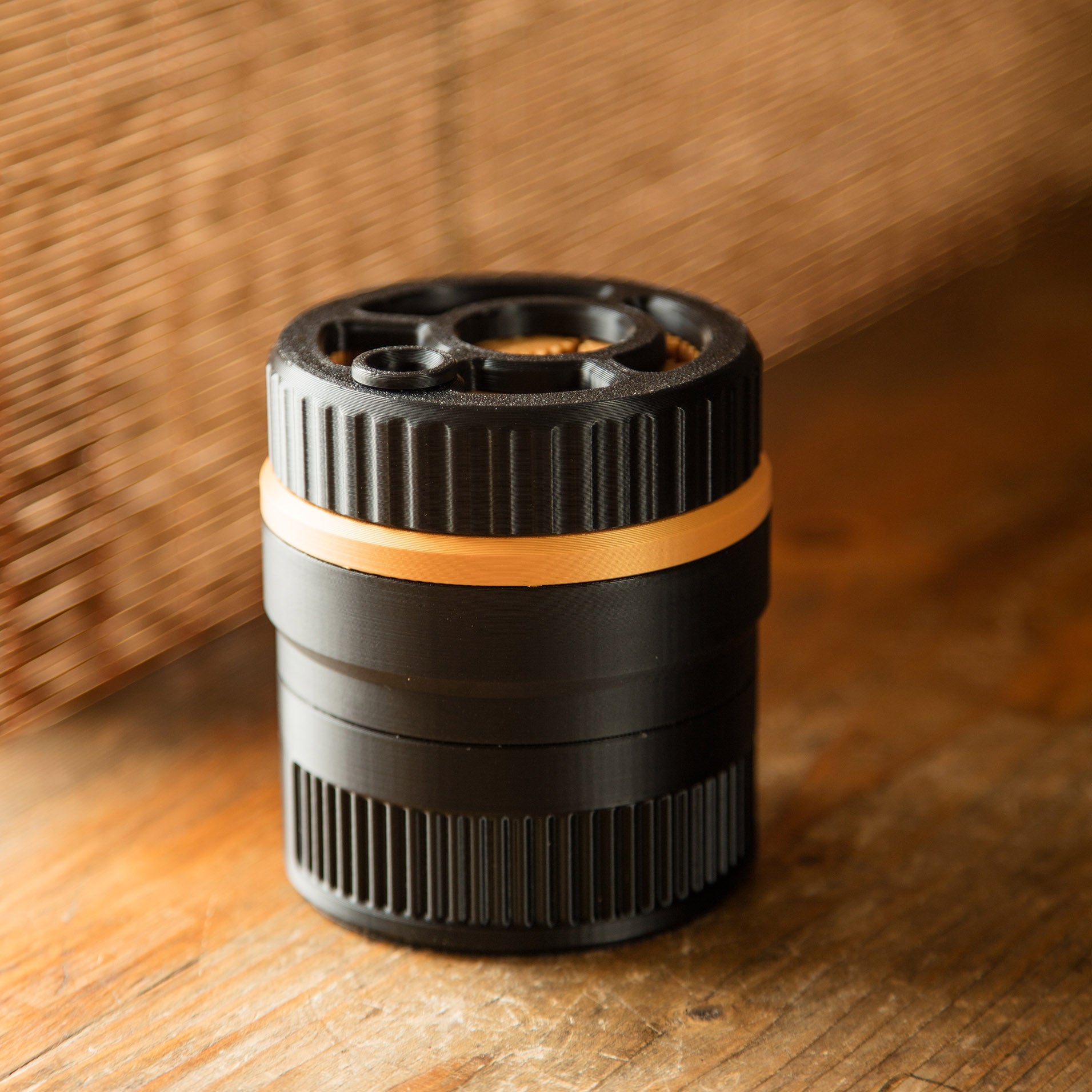 Innovative Planetary Gear Design: Ensures precise distribution of loose powder like coffee grounds or makeup powder.