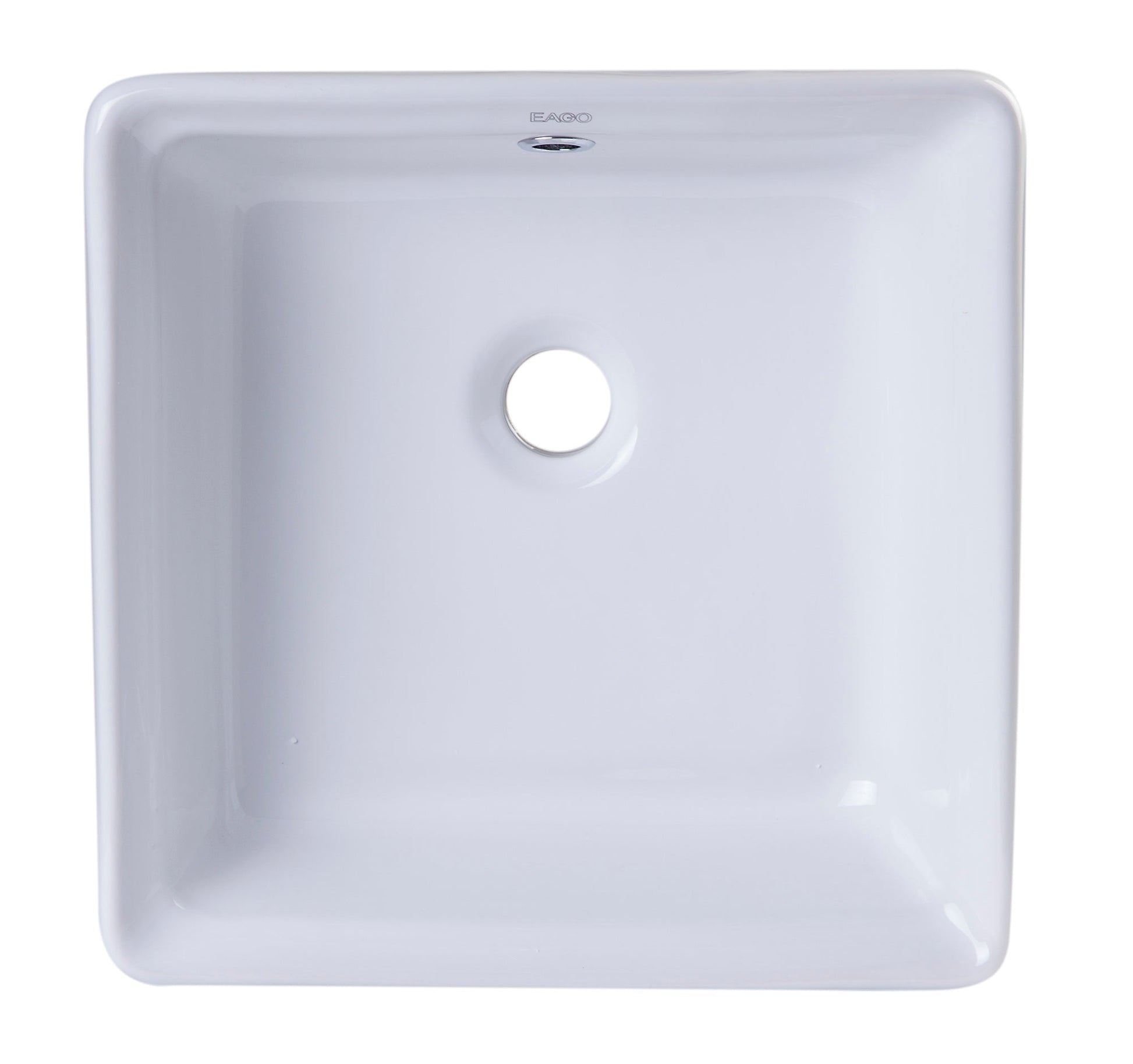 This unique EAGO above mount square bathroom sink adds contemporary flair to any bathroom decor. Built in overflow and countertop faucet installation offer a modern sleek appearance. Compact size and with a smooth glazed porcelain finish, this sink will add the finishing touch you've been searching for.