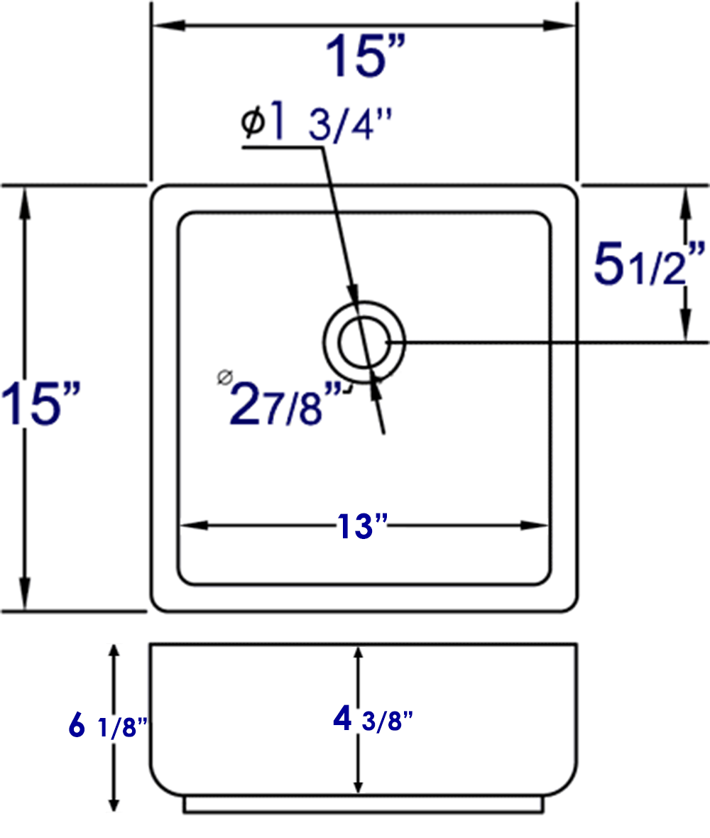 EAGO BA130 15" SQUARE CERAMIC ABOVE MOUNT BATHROOM BASIN VESSEL SINK