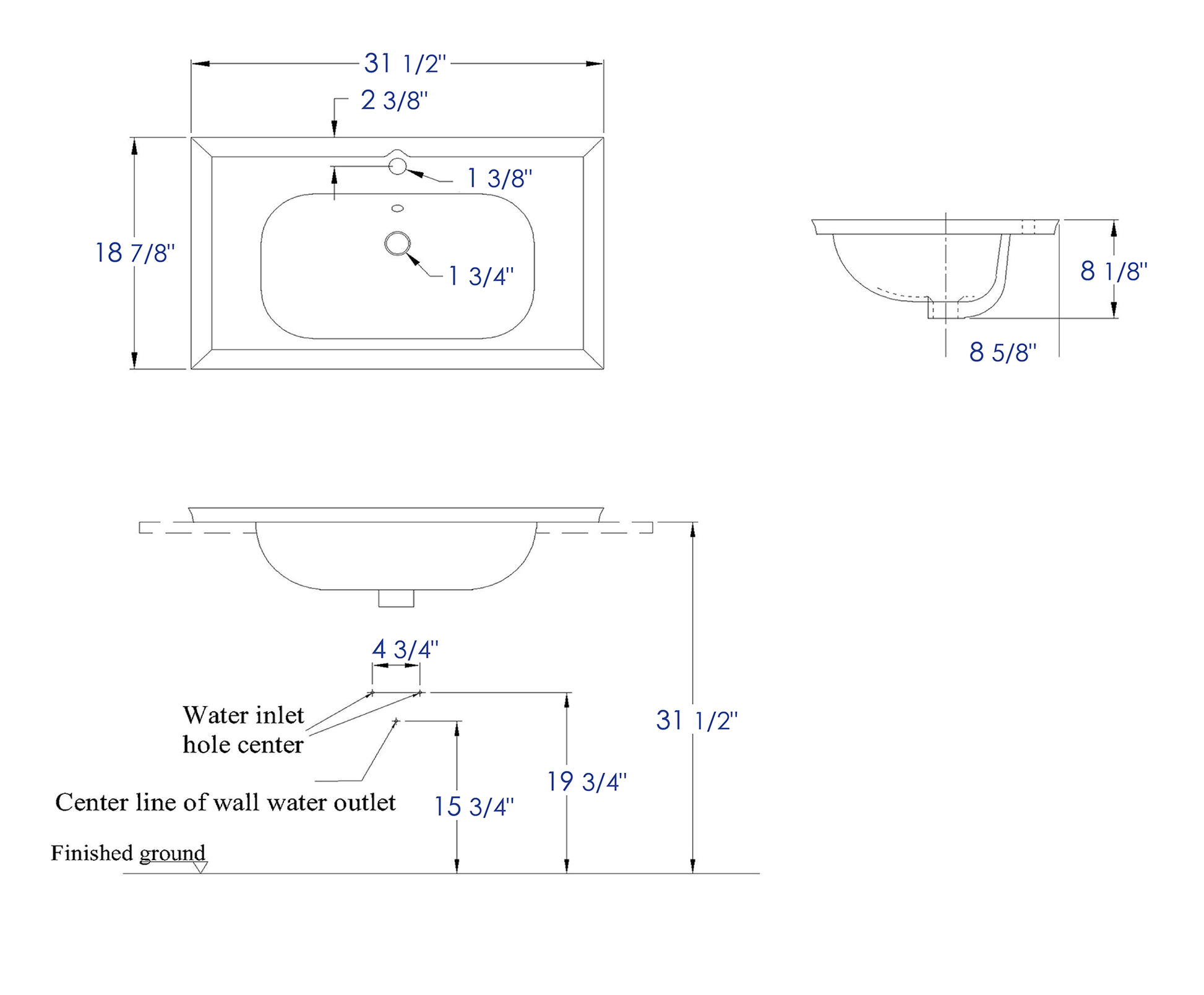 - Rectangular drop in high quality porcelain basin.