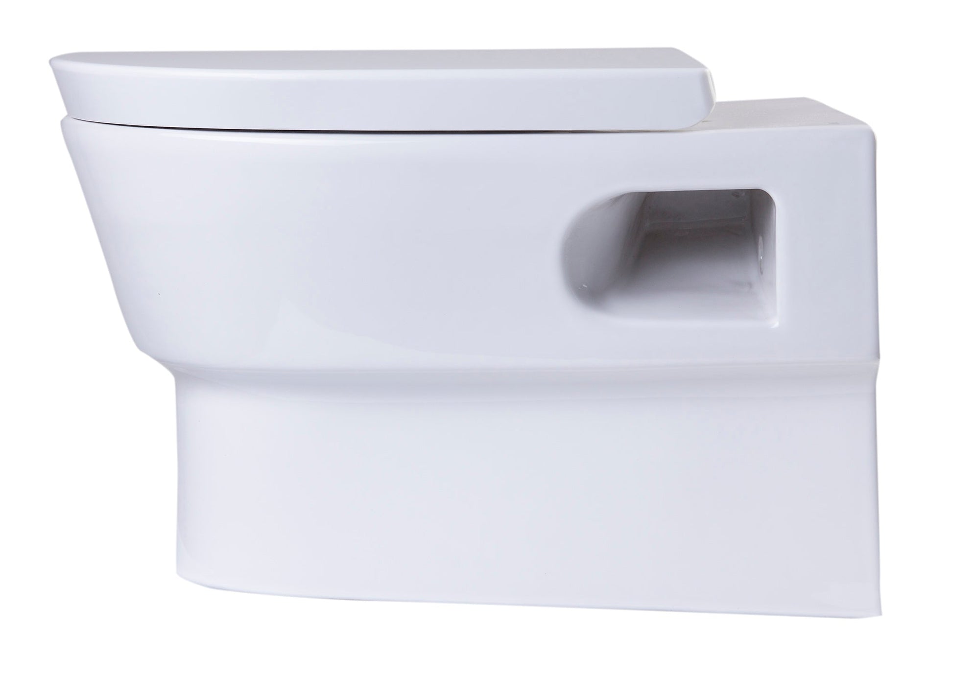 THE FUTURE OF AMERICAN TOILETS Ultra Low Flush (ULF) Eco-Friendly 1.6 Gallon full tank flush. ADA Compliant. Can be installed at the height of your choice, install it so that the seat height is over 17" from the floor for ADA compliance. One Piece Toilet. Enjoy a sleek solid European design. Not only does it look so much better than your old toilet, it also works a whole lot better. Sleek Wall Mounted Look. Mounts to the wall leaving your floor space completely free, providing a functional benefit while offering a unique and stylish look to your bathroom. Fully Glazed inside & out. The trap ways of EAGO toilets are perfectly glazed just as they are on the outer surface. Keeping your toilet flushing like new for years. Living the Green Life. This environmentally friendly toilet will save a family of four an average of 10,000 gallons of water per year! Soft Closing Toilet Seat & Lid Included. Never be startled again by the loud crash of a slamming toilet seat. The soft drop seat has an innovative hinge system that will gently guide the toilet seat down with out a sound.