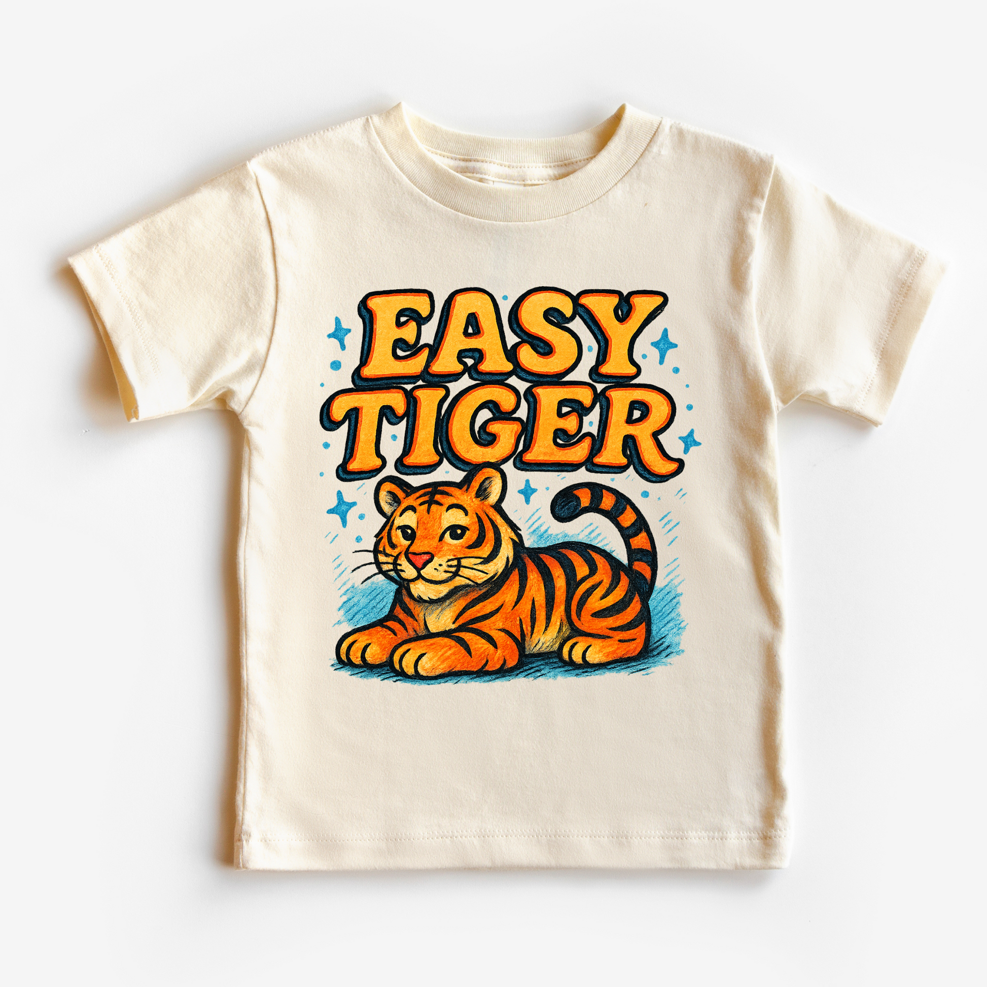 This Easy Tiger Funny Shirt for kids combines comfort and playful style, perfect for everyday wear. Made from soft, breathable fabric, it keeps your child comfortable all day. The witty "Easy Tiger" design adds a fun touch to any outfit, making it a great choice for casual outings or playdates. Durable and easy to care for, this tee is a practical addition to your child's wardrobe that brings smiles and style together.