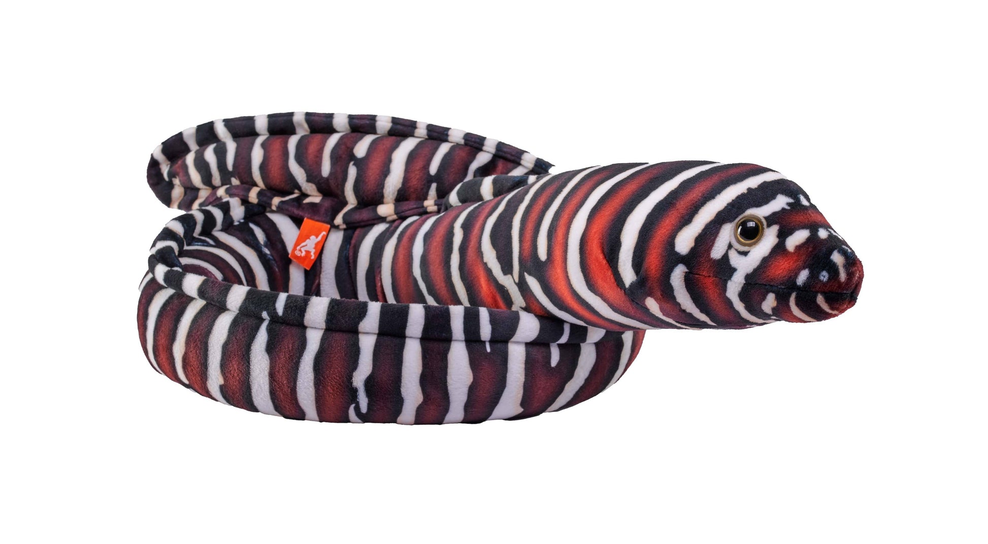 Embark on an underwater adventure with the Living Ocean Zebra Moray Eel plush by Wild Republic. Designed to captivate and educate, this realistic stuffed animal provides a safe and huggable companion for children and adults. With Wild Republic's commitment to quality and nature exploration, it's the perfect choice for young explorers everywhere.