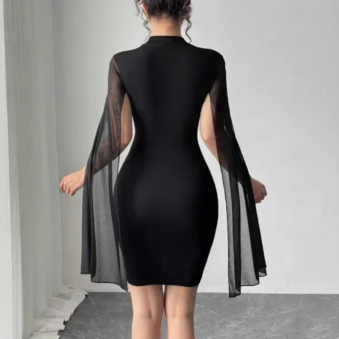 ✔ Design: Round Neck Turtleneck | Cape Sleeves | Mid-Length (Above Knee)