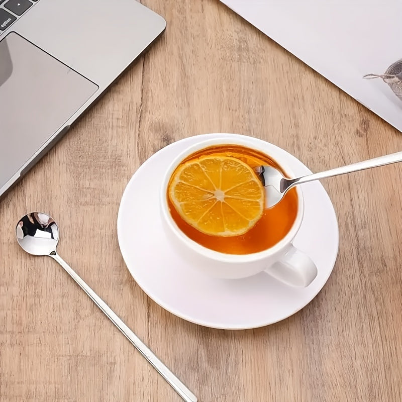Made from high-quality metal, these spoons boast durability without sacrificing style. These long-handled silver champs aren't just about looking good; they’ve got the strength to handle whatever your day’s brew throws at them. Ditch the disposables and level up with a set that’s as eco-conscious as it is jaw-droppingly beautiful. Each spoon in this elegant set is crafted to fit seamlessly into your modern-day hustle, making them a must-have for every chic coffee connoisseur. Whether you're in the study zone, gaming like a pro, or brunching vibes with the squad, these spoons are the all-stars of your coffee game.
