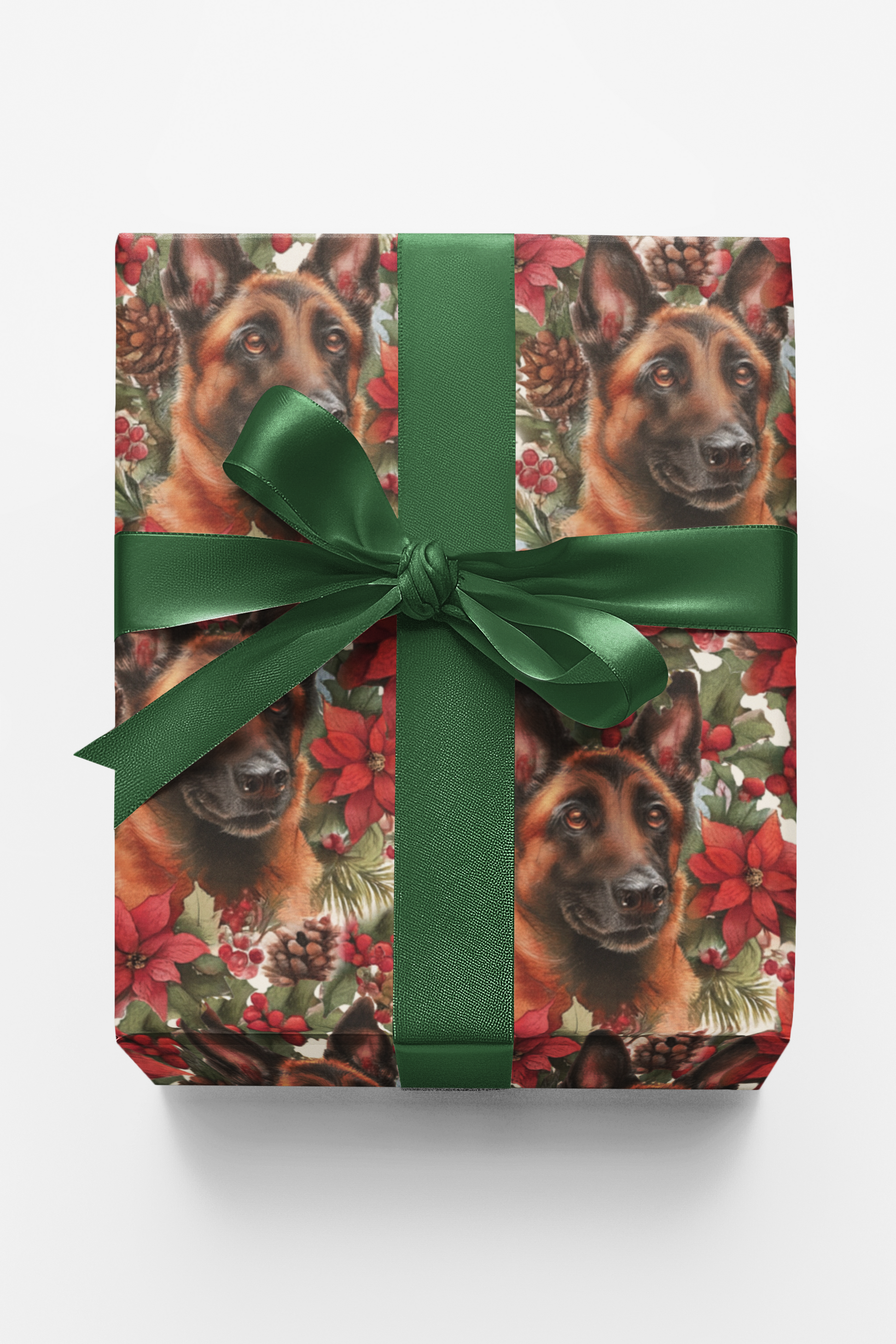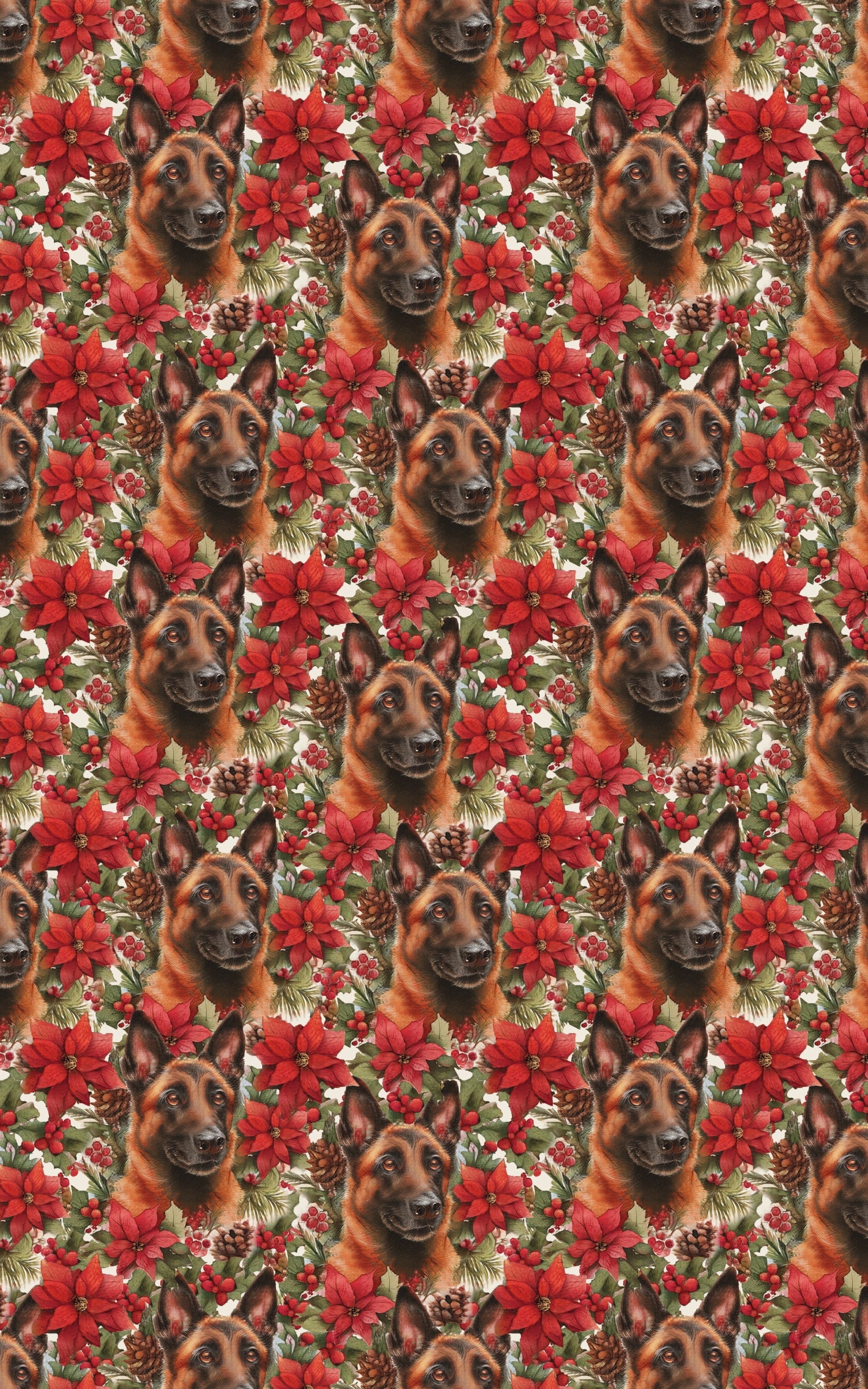 Silent Focus, Holiday Flame (Belgian Malinois) Sharp as a winter wind and steady as a glowing ember, the Belgian Malinois brings unwavering devotion to the heart of the holidays. This wrap captures their focused spirit—fearless, intelligent, and always watching with quiet loyalty. With every fold, it carries the strength of a trusted guardian and the warmth of a companion who stands close through every season. Wrap your Christmas in courage, calm, and the kind of love that never lets down its guard.