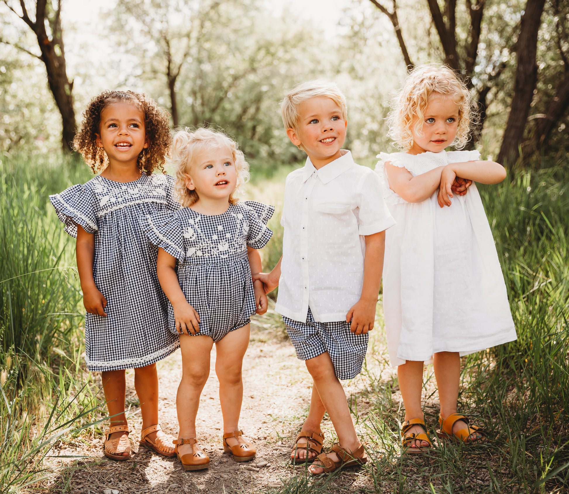 Introducing the Embroidered Yoke with Ruffle Sleeves Romper. Combining classic gingham with intricate embroidery, this timeless romper is perfect for all special occasions - from casual family days to special evenings. Plus, find sibling matches for both boy and girl - the perfect way to create treasured twinning memories. Get dressed up for your special day with this exclusive and sophisticated garment.