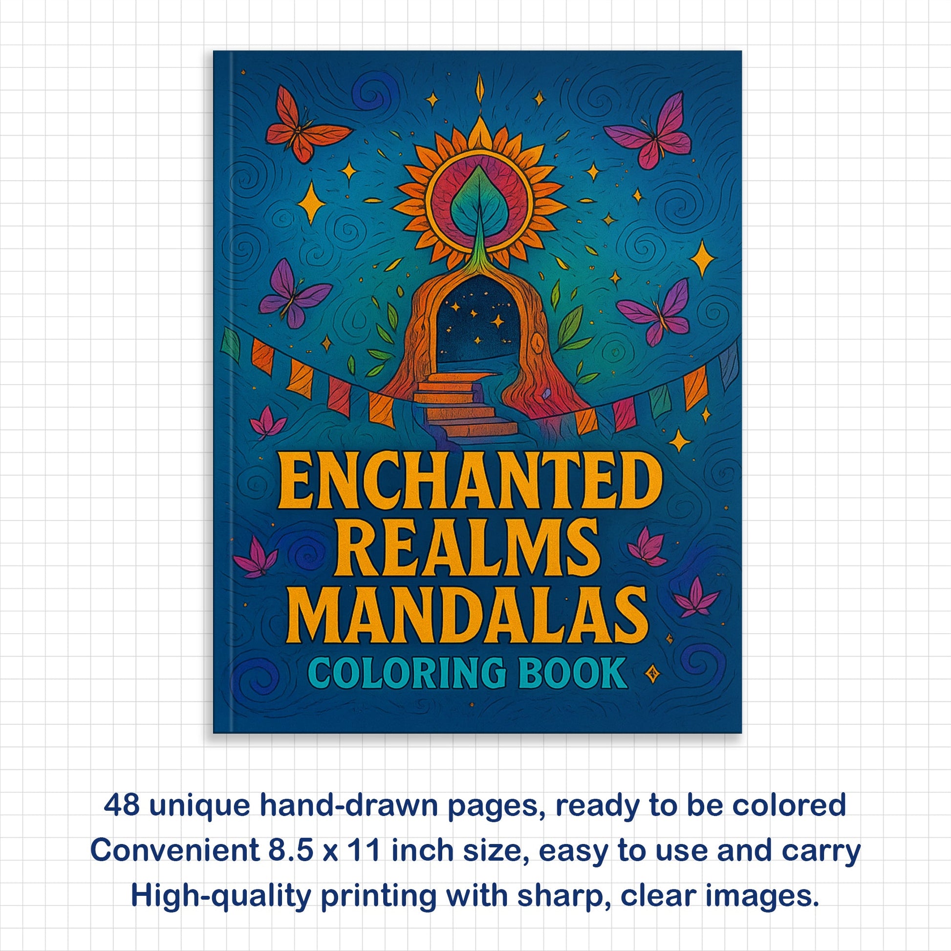 Enchanted Realms Mandalas Coloring Pages – 48 Fantasy Designs of Sacred Nature - For Adults