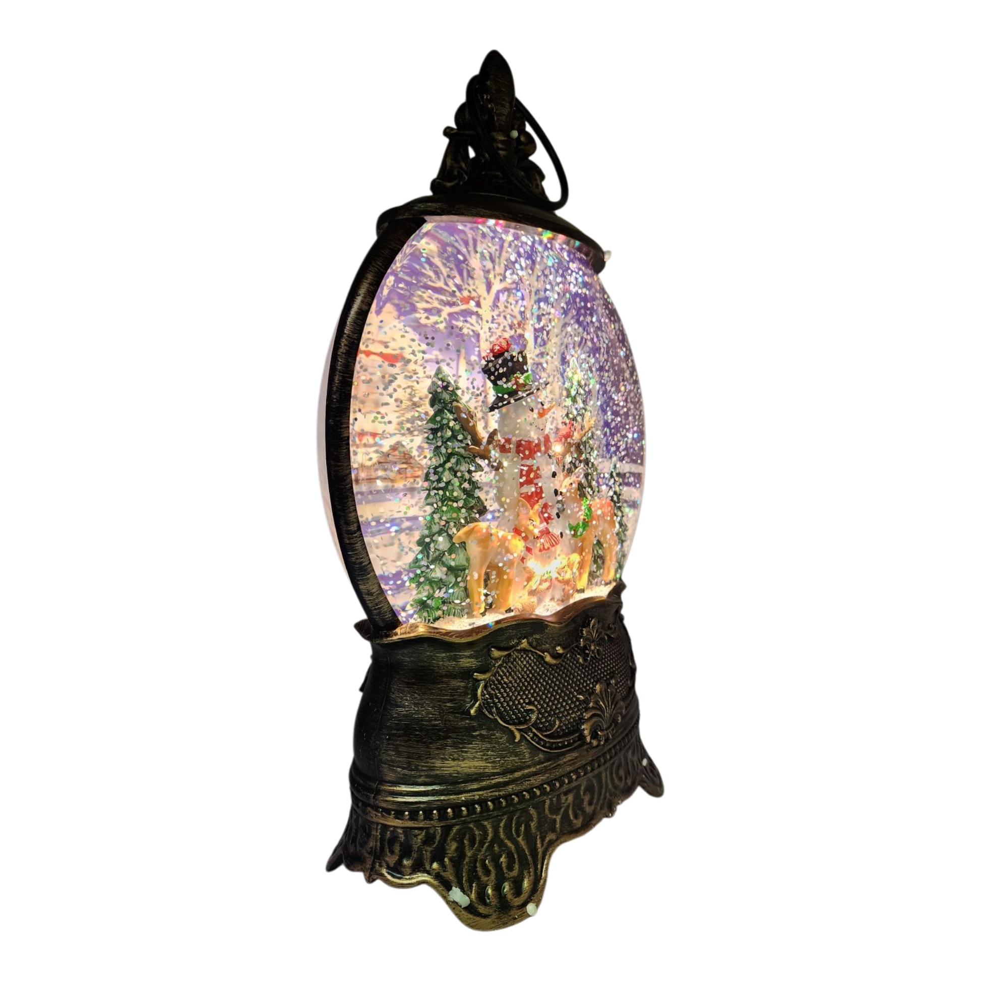Let the magic of winter fill your home with our Enchanted Winter Water Globe, standing at a charming height of about 10.5 inches. This beautifully crafted piece features a captivating scene, showcasing a delightful snowman surrounded by gentle deer nestled among snow-covered trees, all set within an intricately designed base. With its lighted feature and moving water element, it creates a whimsical display that enchants all who gaze upon it, making it a perfect decoration for the holiday season.