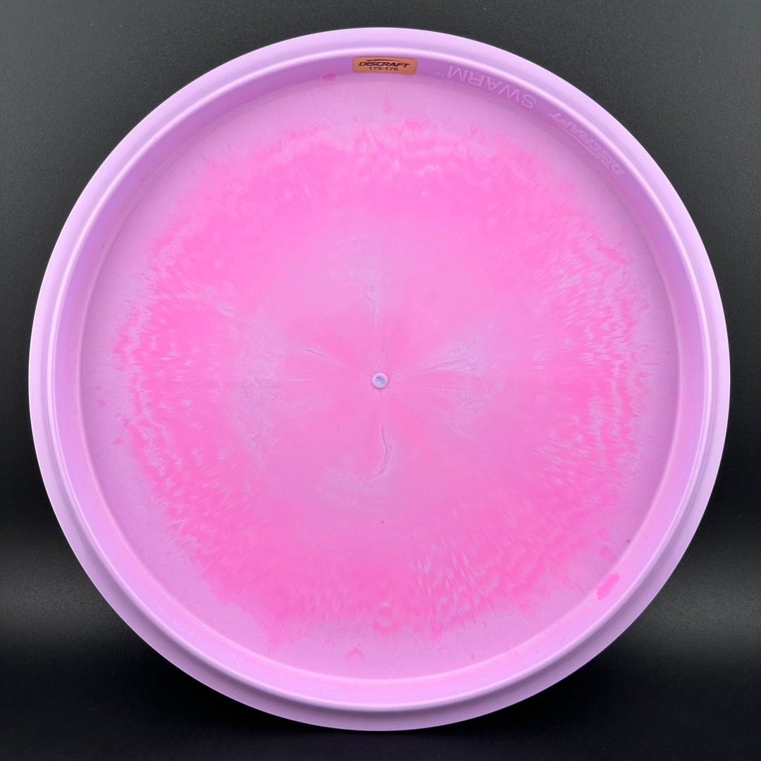 The Discraft Swarm is a flat top midrange similar to the Buzzz OS. Shallow and flat makes us think this could be similar to the old MD4 mold - overstable midrange that can be forehand or backhanded with accuracy and speed.