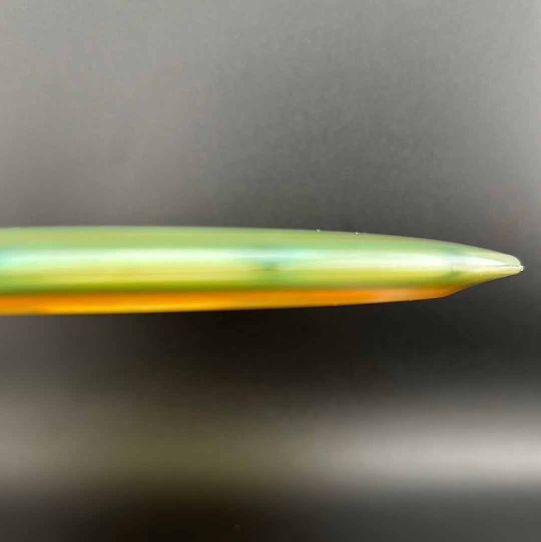 Ethos plastic from Thought Space Athletics is a premium blend and their most durable. It's see through and also the most overstable right out of the box. Plan on keeping this disc around for a long time because it will take a long time to break in and become flippy.