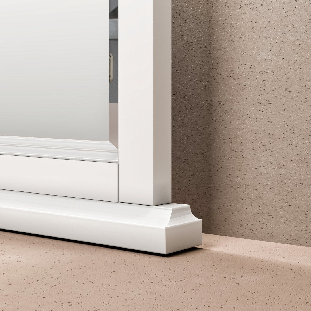 The Eviva Britney Mirror adds a touch of transitional elegance to your home or bathroom. Its sturdy wood frame and featuring a Decorative 5.5" wooden crown framed molding in White finish, with waterproof premium material ensures durability and a classic sophisticated look. The mirror features burst proof glass with beveled edges and crystal clear reflection and minimal distortion, with 9mm waterproof back and allows for both horizontal and vertical mounting options. The Britney Mirror is available in 24" width and a height of 30", and includes all necessary mounting hardware and brackets for easy installation.