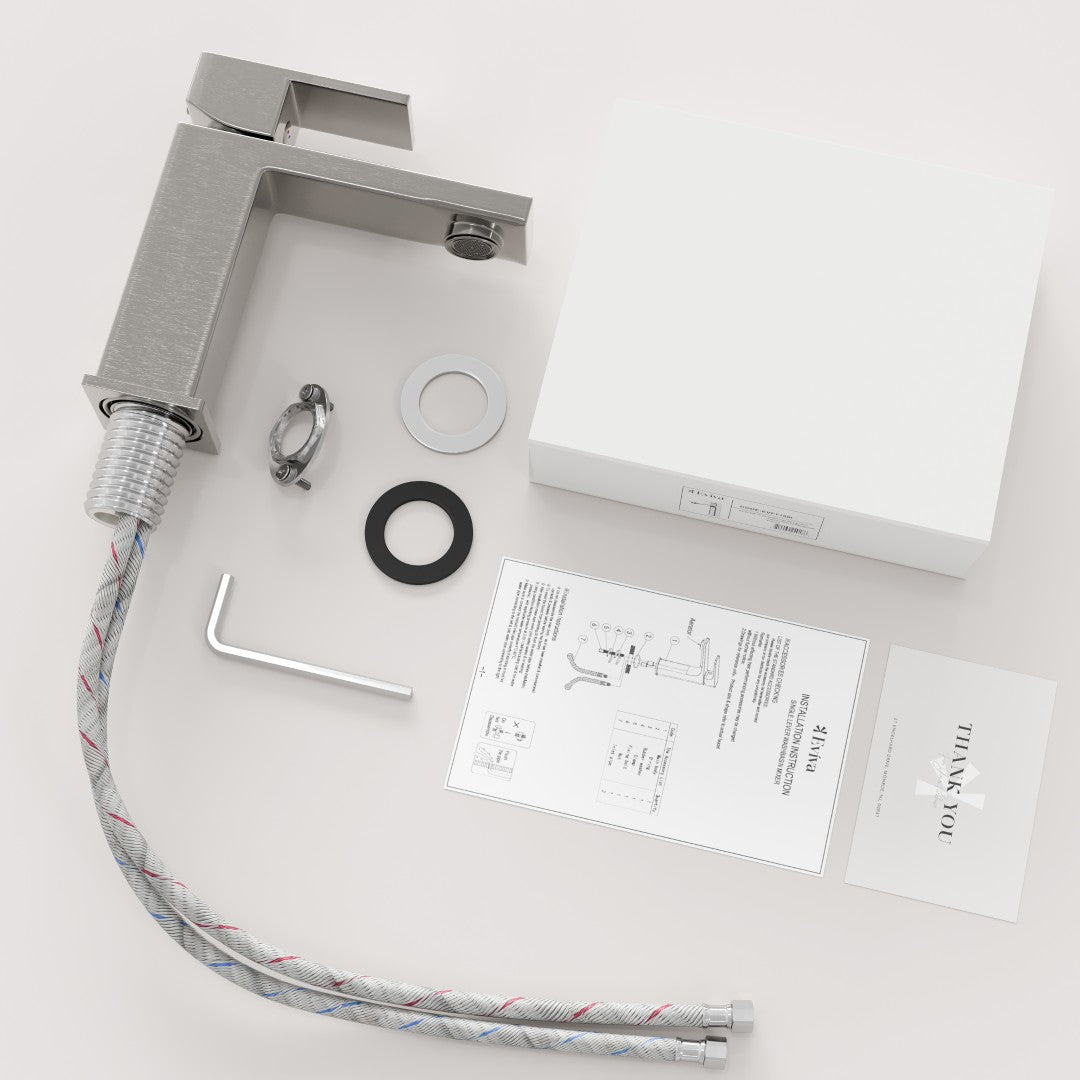 Elevate your bathroom with Ella Bathroom Faucet. Built with premium 304 lead-free stainless steel, it ensures non-corrosion, non-rust, and anti-scratch durability. The single-hole, single-lever handle design provides effortless installation and control. Experience the smooth waterfall spout with an aerated, splash-free 1.5 GPM flow. Finished in elite Black, elegant Brushed Gold, gorgeous Brushed Nickel, splendiferous Chrome, or majestic Gold, this faucet blends elegance with performance. Comes with a cUPC PEX supply hose and complete mounting hardware for a seamless setup.