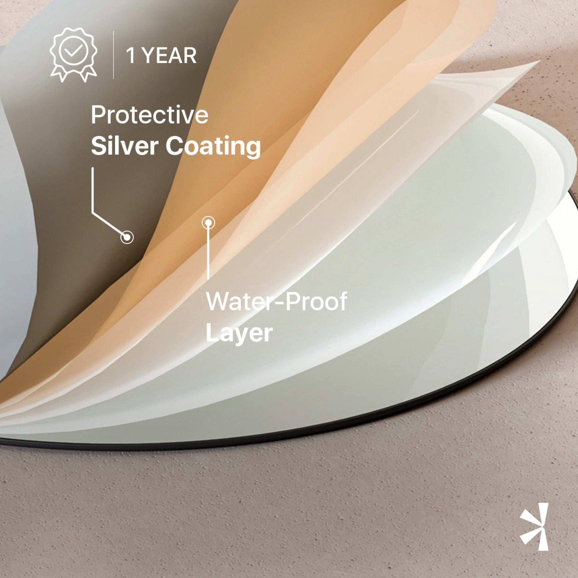 - Premium quality mirror glass with straight edges and 9mm waterproof back