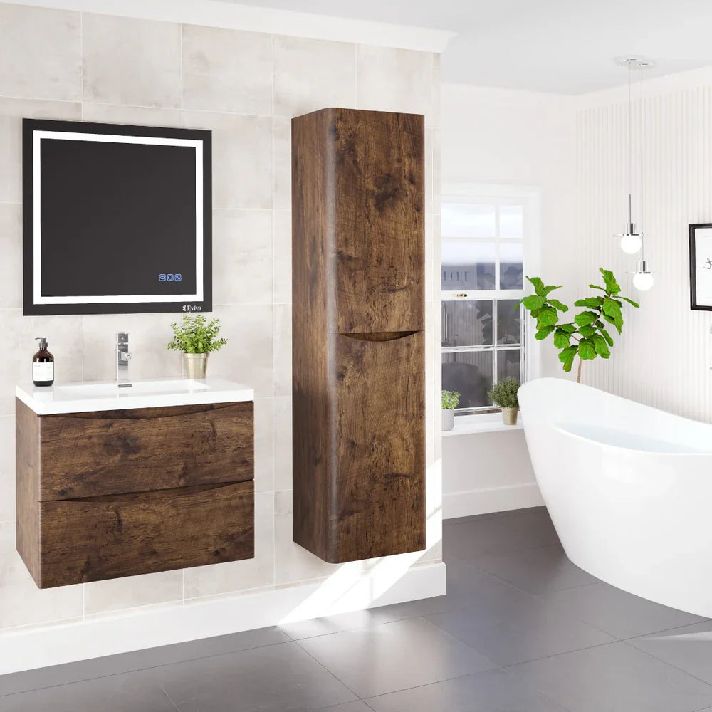Transform your bathroom or dressing area with the Eviva Smile 16" Wall-Mounted Linen Cabinet — where contemporary elegance meets practical storage. Designed with water-resistant engineered wood and a luxurious Rosewood finish, this cabinet brings warm sophistication and long-lasting performance to any space.