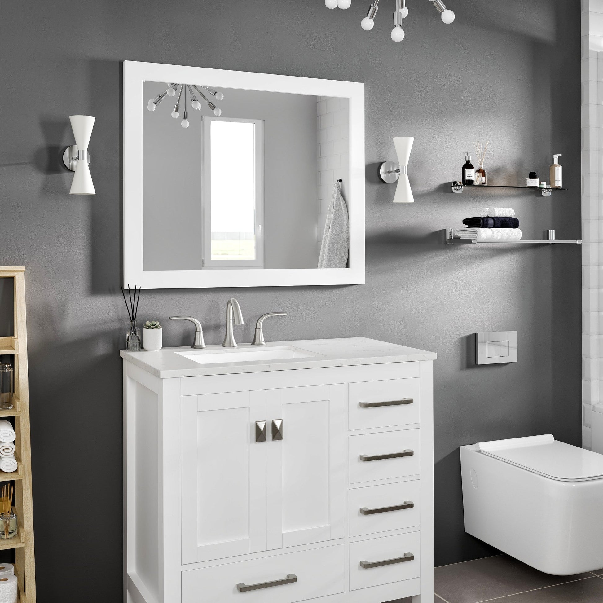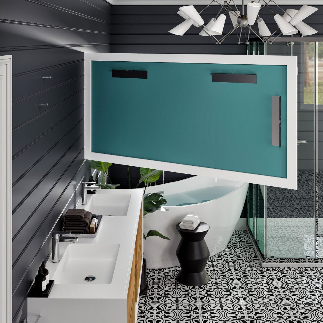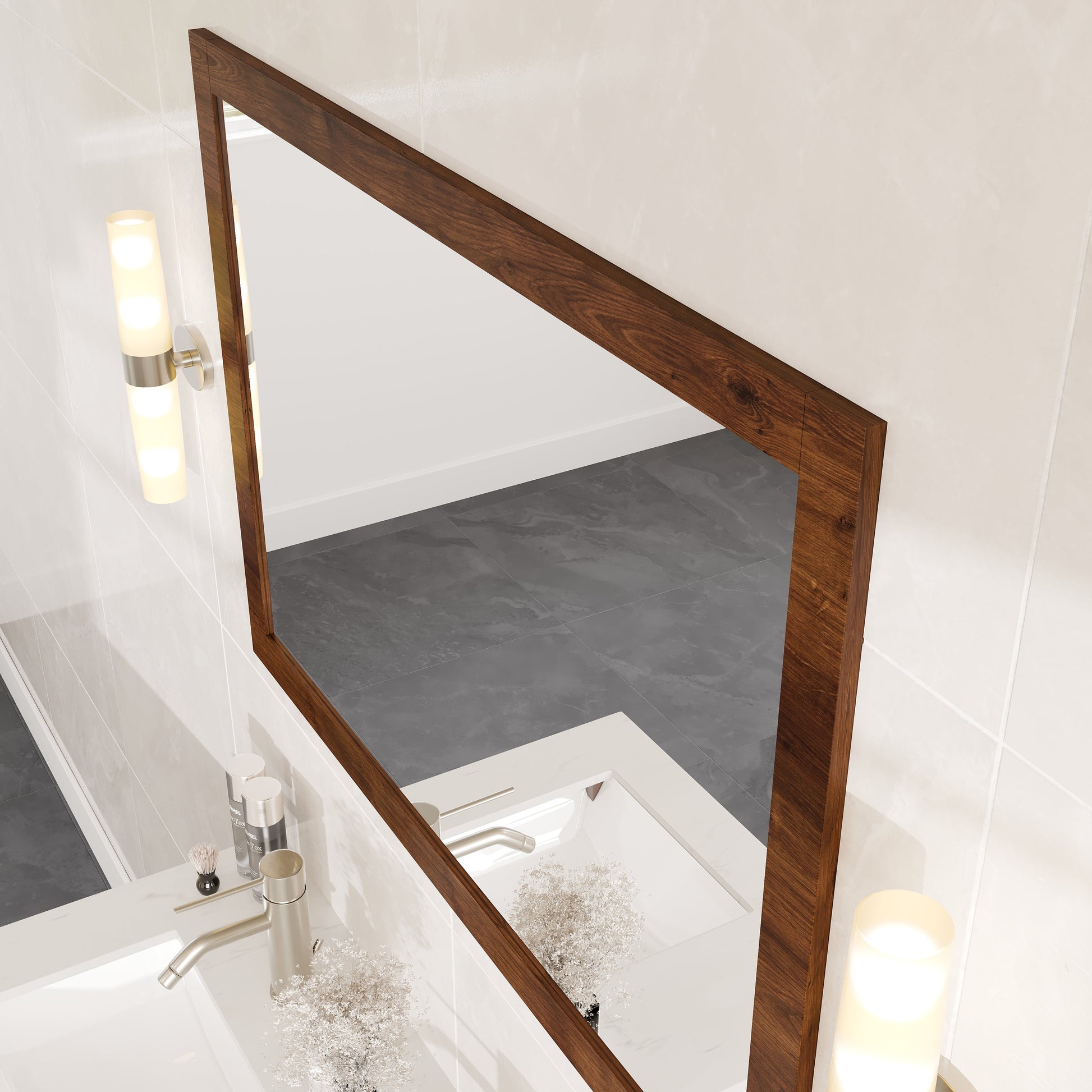 The Eviva Reflection 72 x 32" Mirror adds a touch of transitional elegance to your home or bathroom. Its sturdy wood frame, featuring a sleek 1.75" wide frame molding in gray oak finish, with waterproof premium material ensures durability and style. The mirror features burst-proof glass with bevelled edges and crystal-clear reflection and minimal distortion, with a 9mm waterproof back and allows for both horizontal and vertical mounting options.