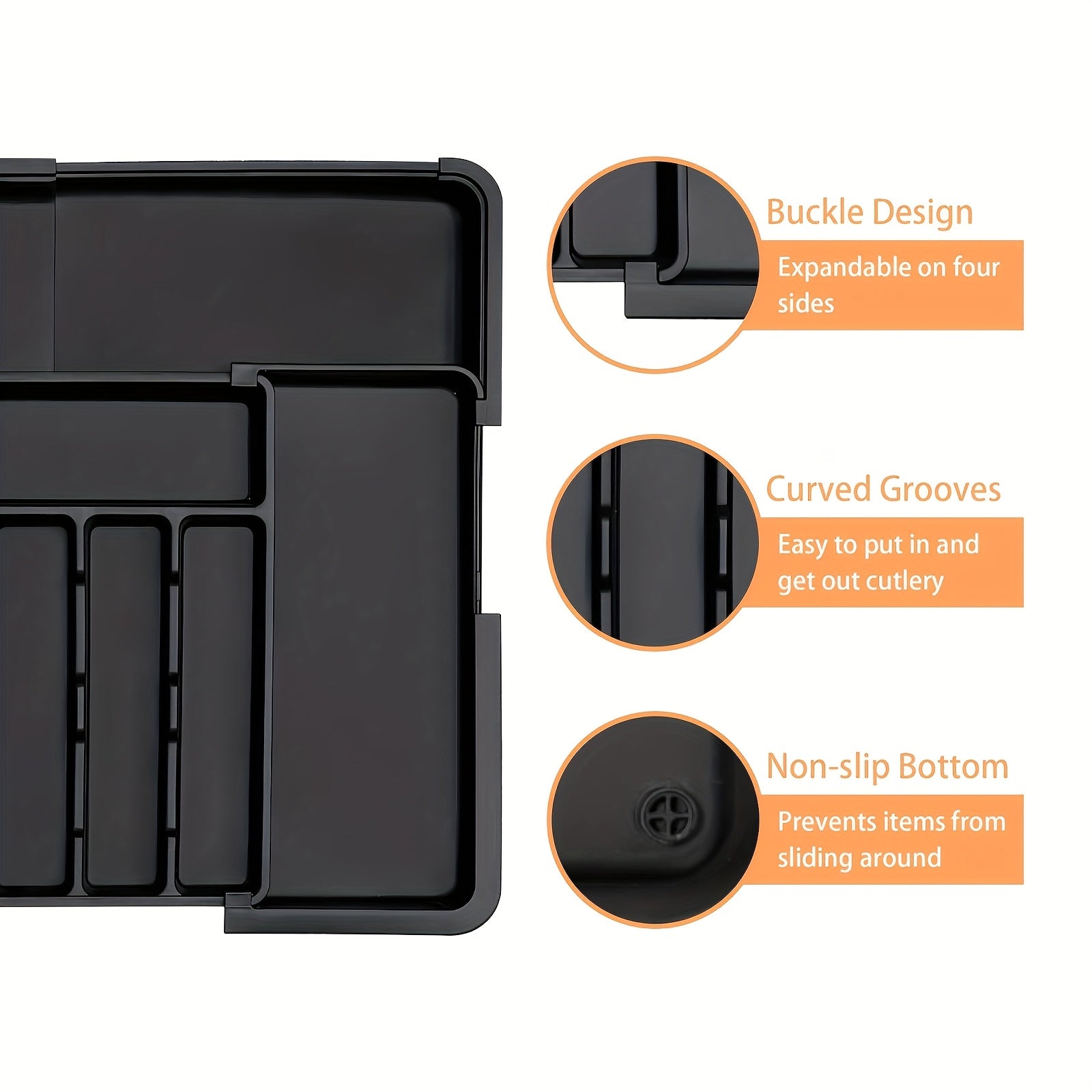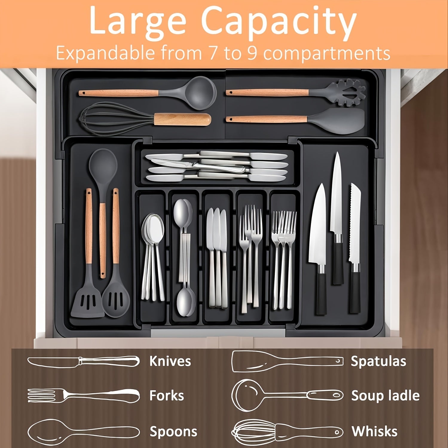 [🍴 Customizable Storage] With 9 compartments and expandable features, this organizer tray offers the perfect space for all your cutlery, utensils, and kitchen gadgets.