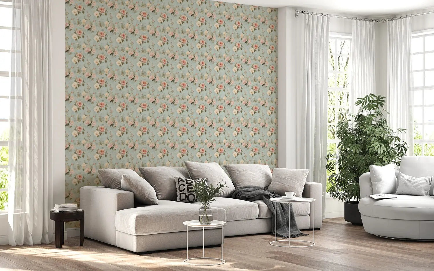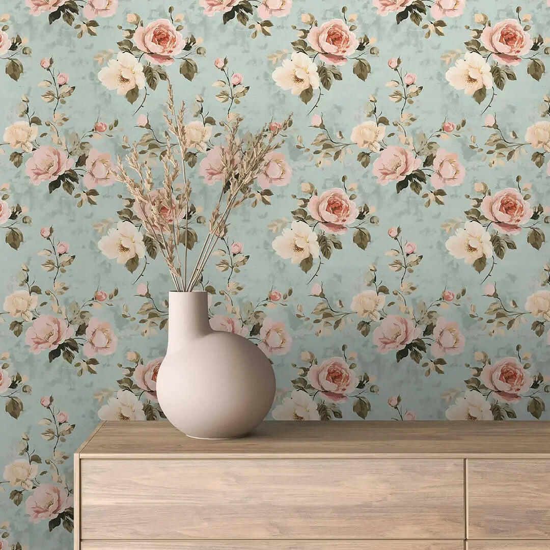 Softly weathered rose florals meet calming sage greens in a poetic, vintage-inspired print. Faded Rose & Sage Memoir adds quiet depth and character to bedrooms, living rooms, nurseries, and entryways—bringing a collected, heirloom feel to modern spaces.