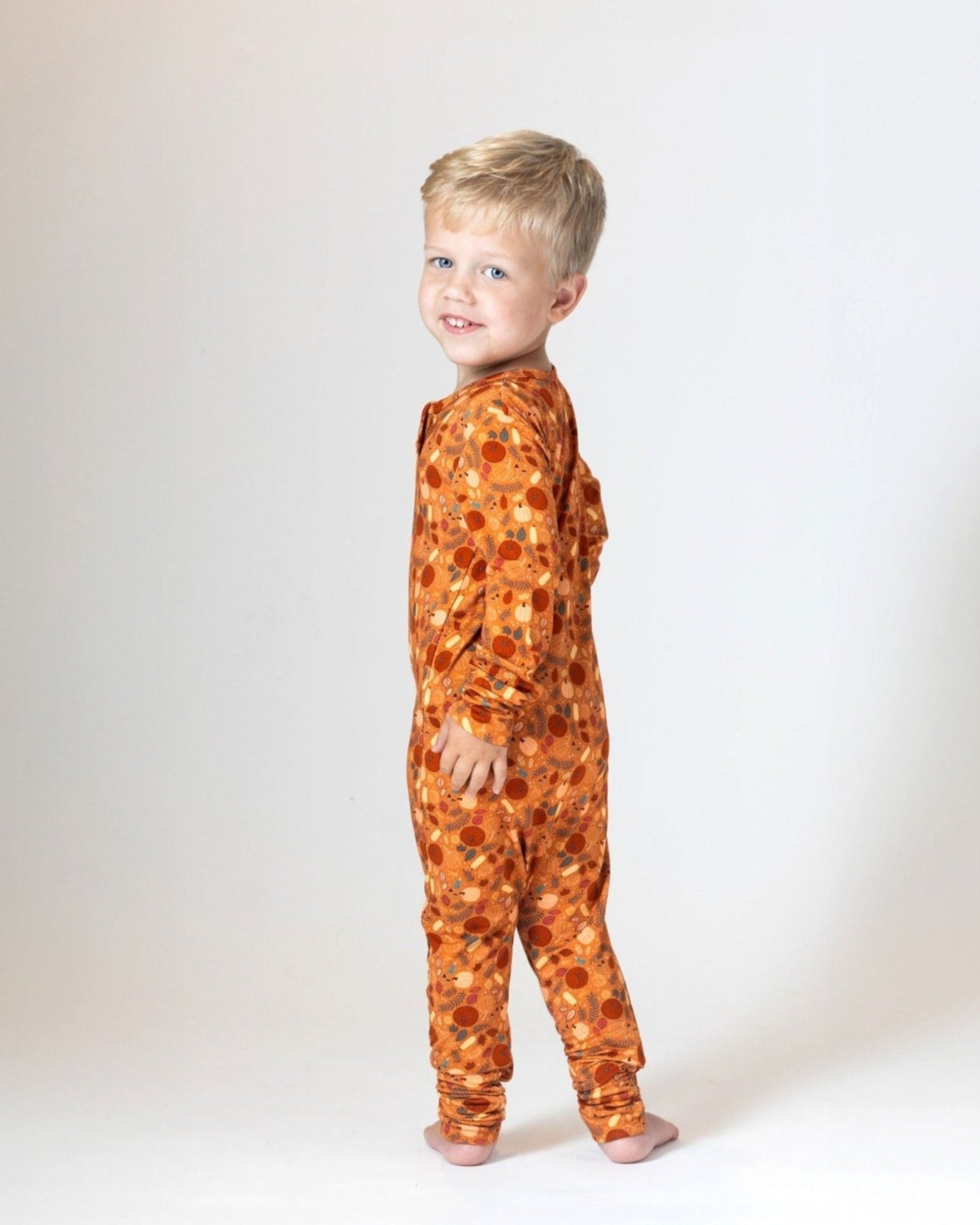 Elevate your Fall nights with our bamboo pajamas for toddlers. The carefully curated print and comfortable fit will allow you to enjoy the Autumn breeze in style. The fold-over cuff features ensure a secure and snug fit for a good night's rest.
