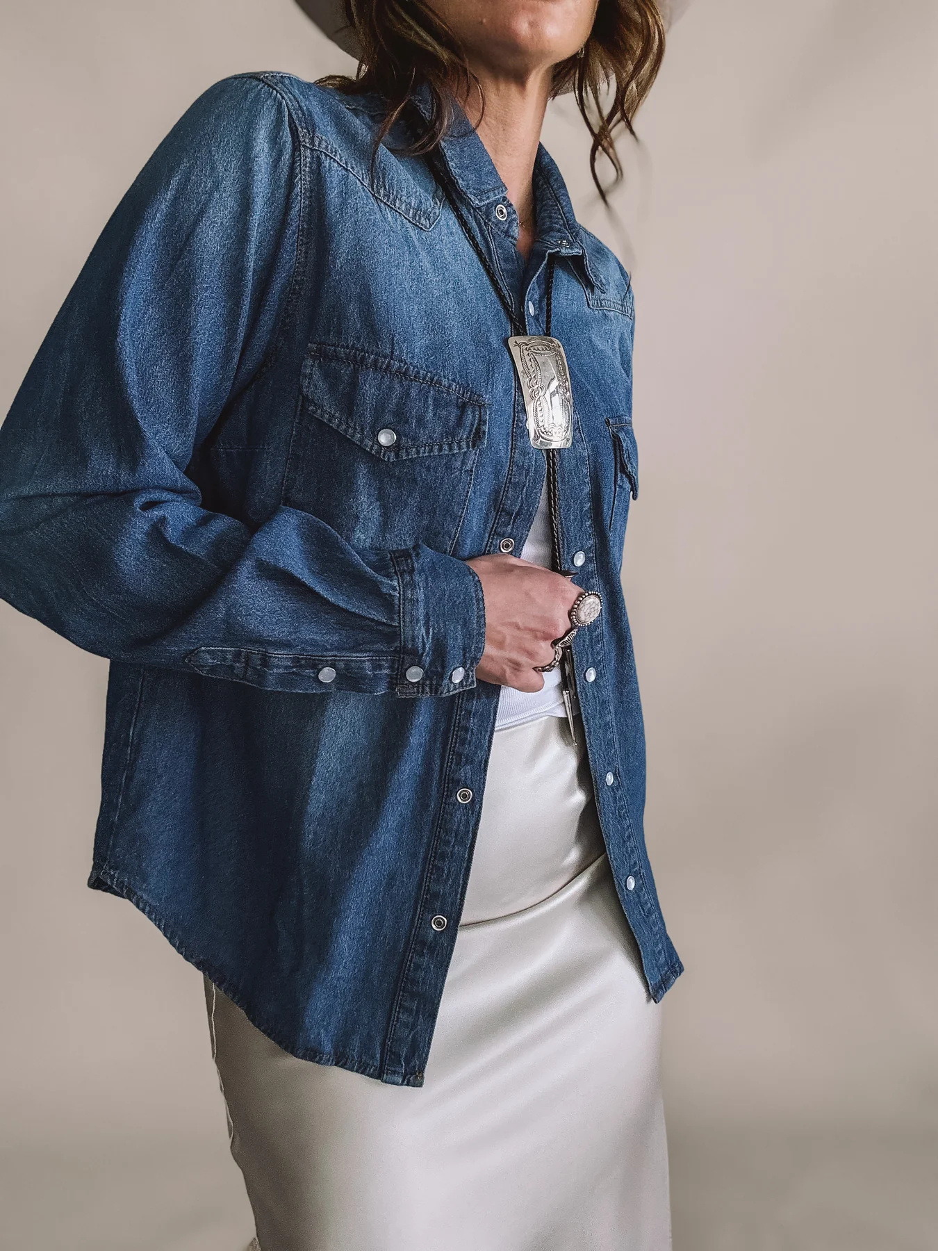 Fall Personality Street Collared Single Breasted Women Long Sleeved Denim Shirt